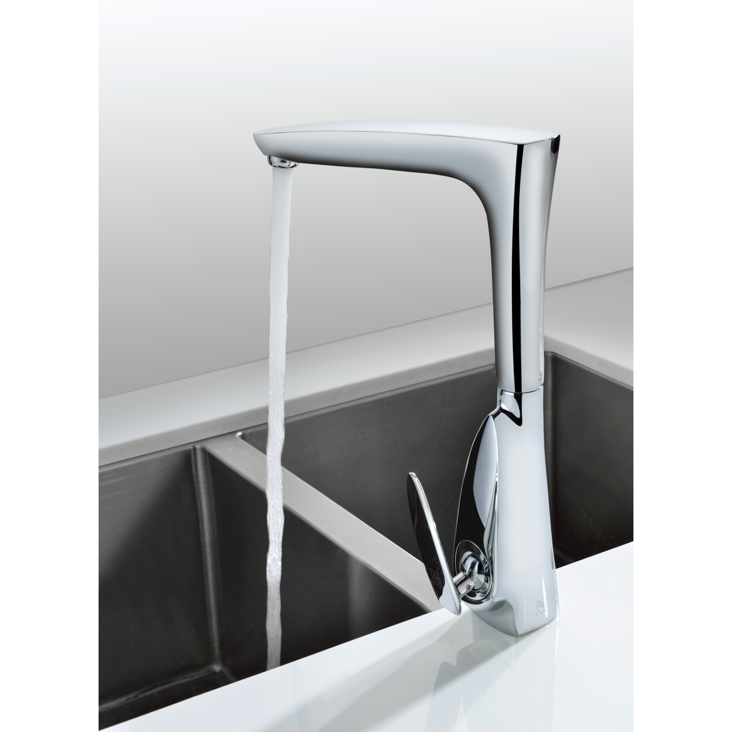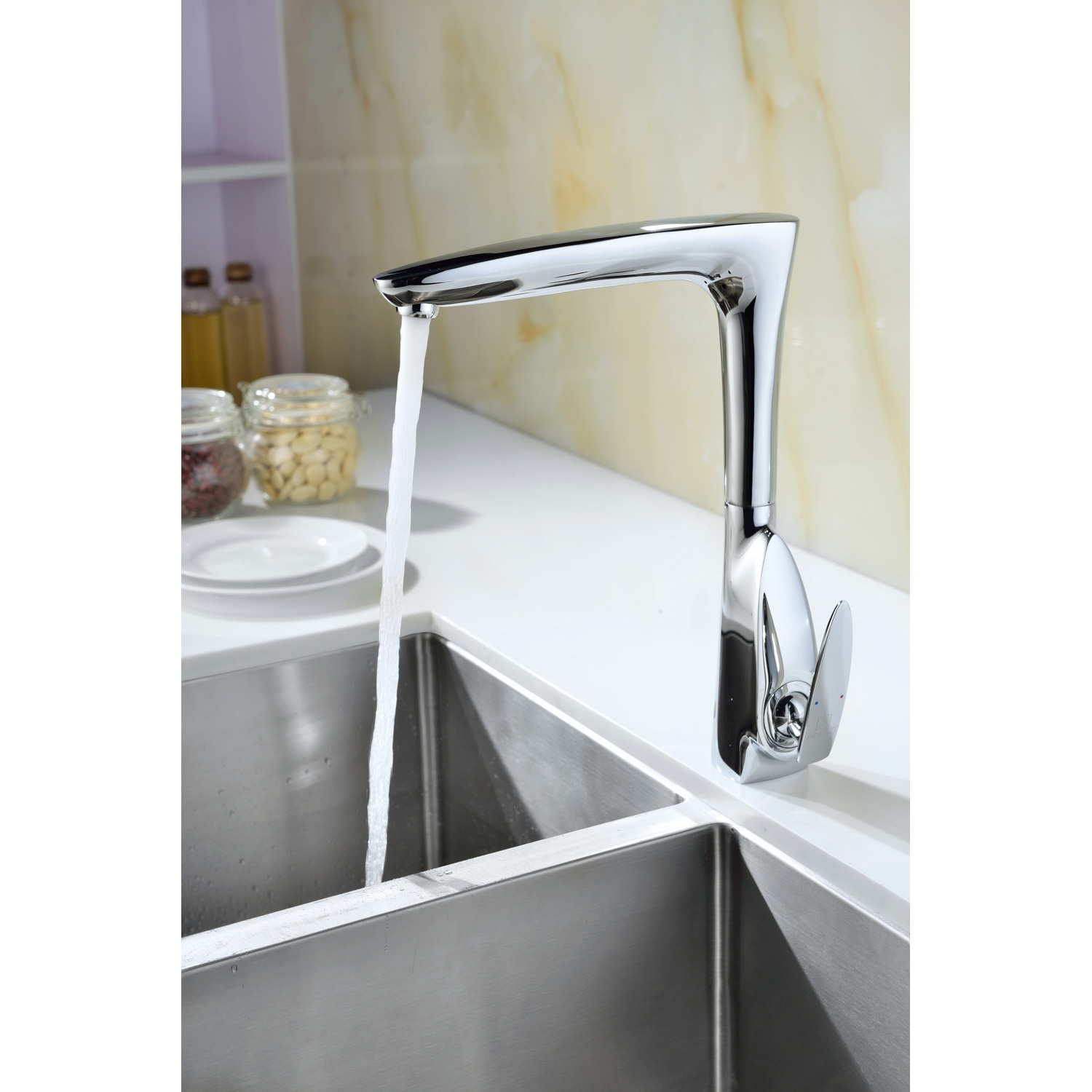 - Elegantly angled spout inspired by the latest European styles
