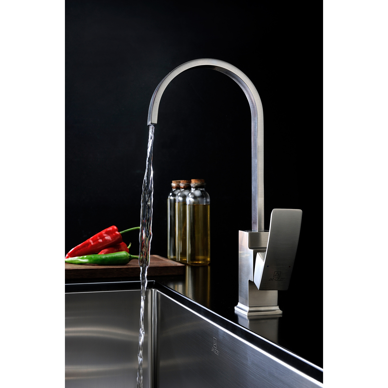 - Elegantly arching spout inspired by the latest European styles