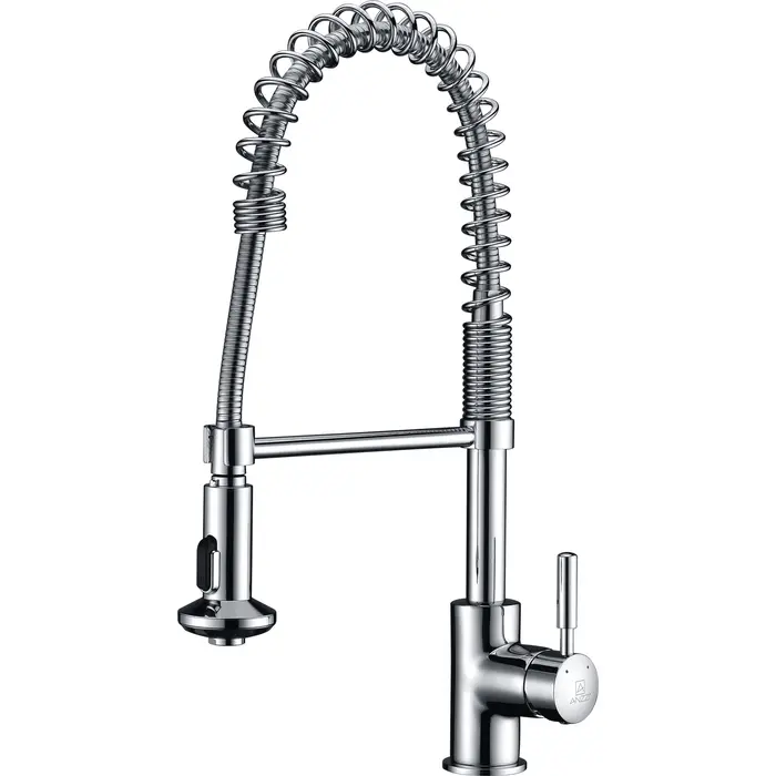 ANZZI presents the Eclipse series pull down kitchen faucet encased with a stunning polished chrome finish. ANZZI has built its reputation of creating the best kitchen faucets by using only high quality RHINO ALLOY certified parts, lead free brass valves and rust resistant exterior plating. The Eclipse series kitchen sink faucets feature the ANZZI Euro-Grip pull down sprayer offering the full range of motion needed for even the toughest dish washing. The deceptively simple single handle design allows for complete and easy control of both water flow and temperature while keeping the gorgeous minimalist aesthetic intact. In our commitment to long lasting quality and design ANZZI has built a reputation for creating the most reliable design faucets for the kitchen and bath space.Euro-Grip pull down high mobility sprayerShips in 24 hoursLead free solid brass valve includedNSF, cUPC and AB1953 certifiedLimited lifetime warrantyDual spray settingsSpout height: 4.56" - spout reach 8.19"Single handle hot and cold water mixerRust and stain resistant polished chrome finishTo speak to a knowledgeable and dedicated ANZZI specialist simply call 1-844-44-ANZZI or visit us on the web at www.ANZZI.com