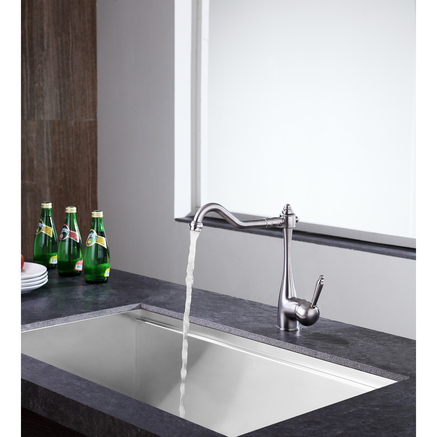 ANZZI is committed to introducing the latest in European bath fixture design to the North American home. ANZZI presents the Patriarch single handle kitchen sink faucet. Crafted using RHINO ALLOY certified brass interior, marine grade ceramic disk and brushed nickel lead-free rust resistant finish. The elegance and style of our ANZZI faucets is matched by their proven performance and reliability. Which is why our faucets are backed by the ANZZI Limited Lifetime Warranty. Become a member of the ANZZI family and experience why Perfection is our Tradition.Stunning brushed nickel finishRHINO ALLOY certified lead-free solid brass with rust resistant finishSingle (1) handle operationSingle (1) hole installationMarine grade ceramic disk includedSpout reach: 9.06 in.; spout height: 8.27 in.Flow rate: 2.2 gpmConnection size: 3/8 in.cUPC, NSF, AB1953 and Watersense certifiedLimited lifetime warrantyShips from factory within 24 hours of orderTo speak to a knowledgeable and dedicated ANZZI specialist simply call 1-844-44-ANZZI or visit us on the web at www.ANZZI.com