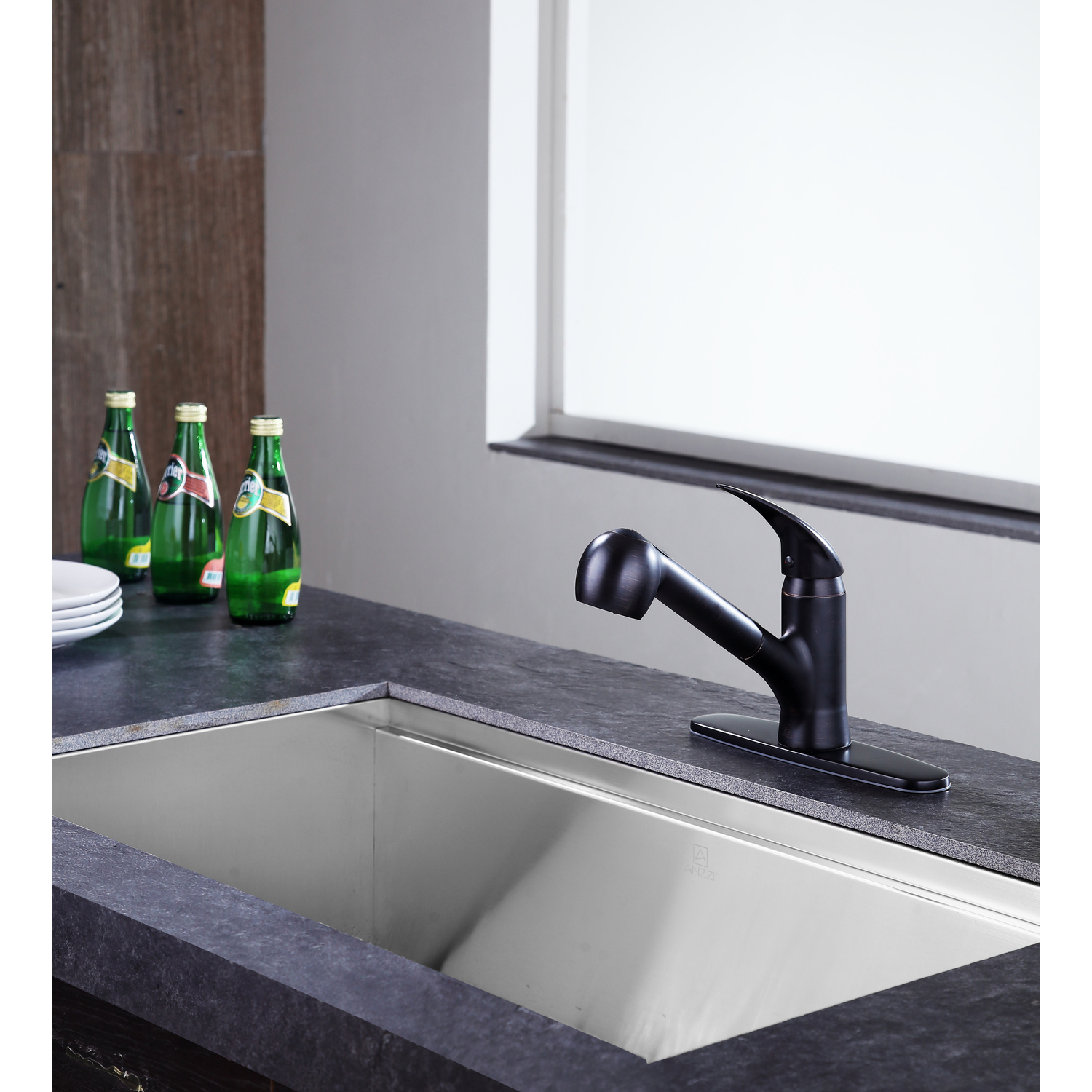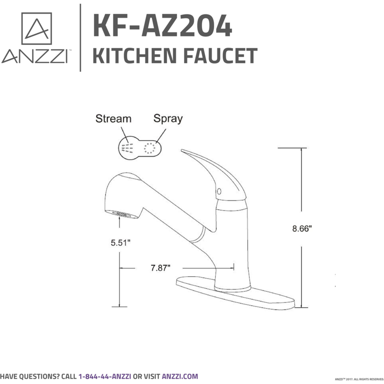 ANZZI is committed to introducing the latest in European bath fixture design to the North American home. ANZZI presents the Del Acqua single handle kitchen sink faucet. Crafted using RHINO ALLOY certified brass interior, marine grade ceramic disk and oil rubbed bronze lead-free rust resistant finish. The elegance and style of our ANZZI faucets is matched by their proven performance and reliability. Which is why our faucets are backed by the ANZZI Limited Lifetime Warranty. Become a member of the ANZZI family and experience why Perfection is our Tradition.Elegant oil rubbed bronze finishRHINO ALLOY certified lead-free solid brass with rust resistant finishSingle (1) handle operationSingle (1) hole installation; three (3) hole compatible with included deck plateMarine grade ceramic disk includedSpout reach: 7.87 in.; spout height: 5.31 in.Flow rate: 1.8 gpmConnection size: 3/8 in.cUPC, NSF, AB1953 and Watersense certifiedLimited lifetime warrantyShips from factory within 24 hours of orderTo speak to a knowledgeable and dedicated ANZZI specialist simply call 1-844-44-ANZZI or visit us on the web at www.ANZZI.com