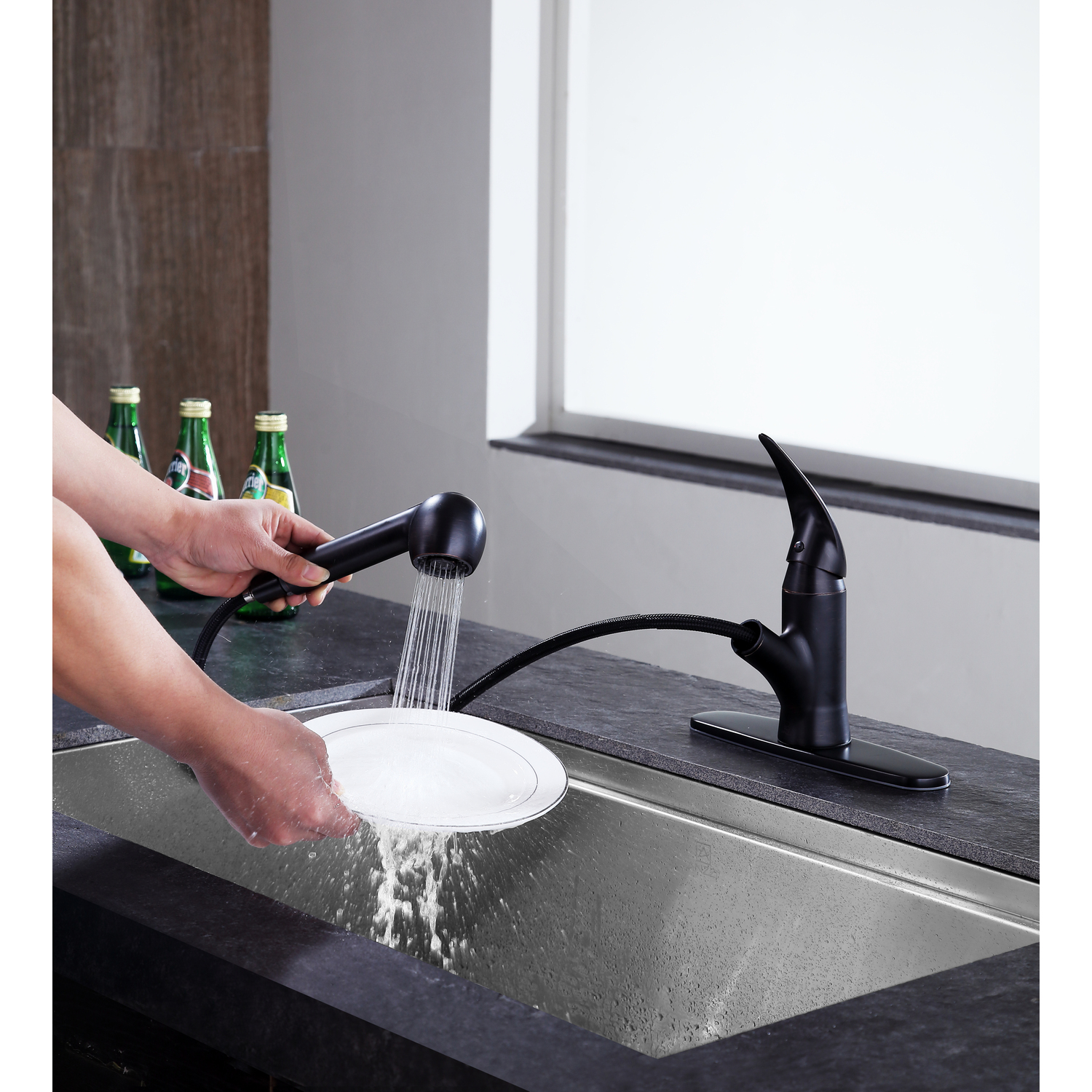 - Single (1) hole installation; three (3) hole compatible with included deck plate
