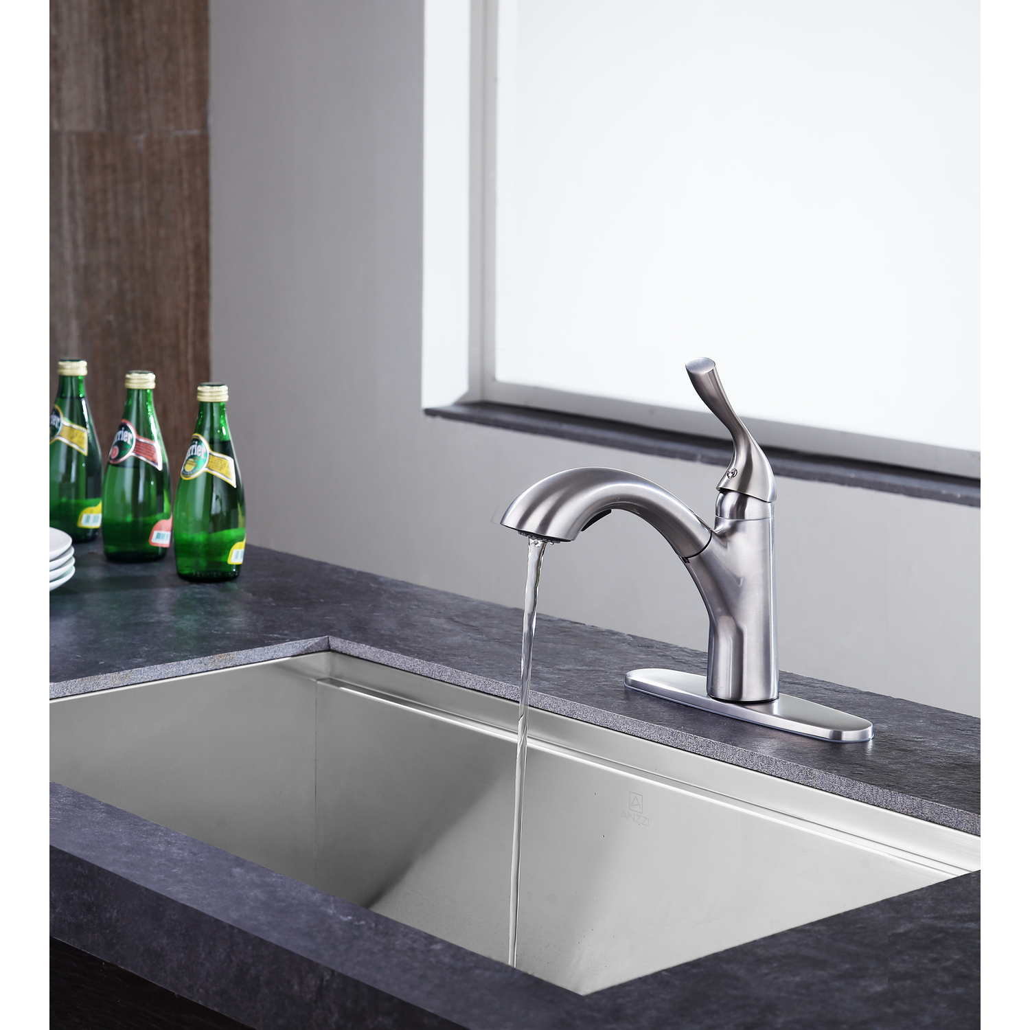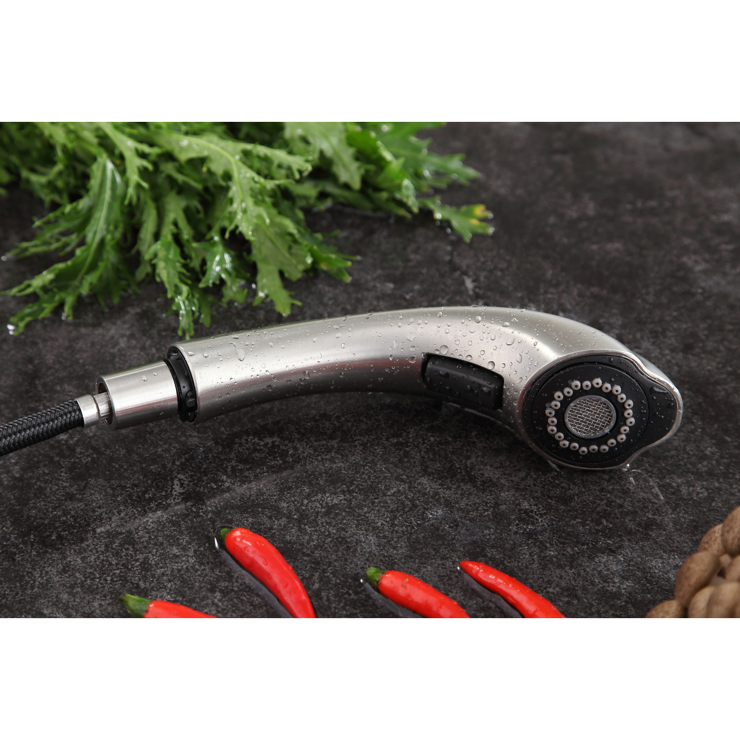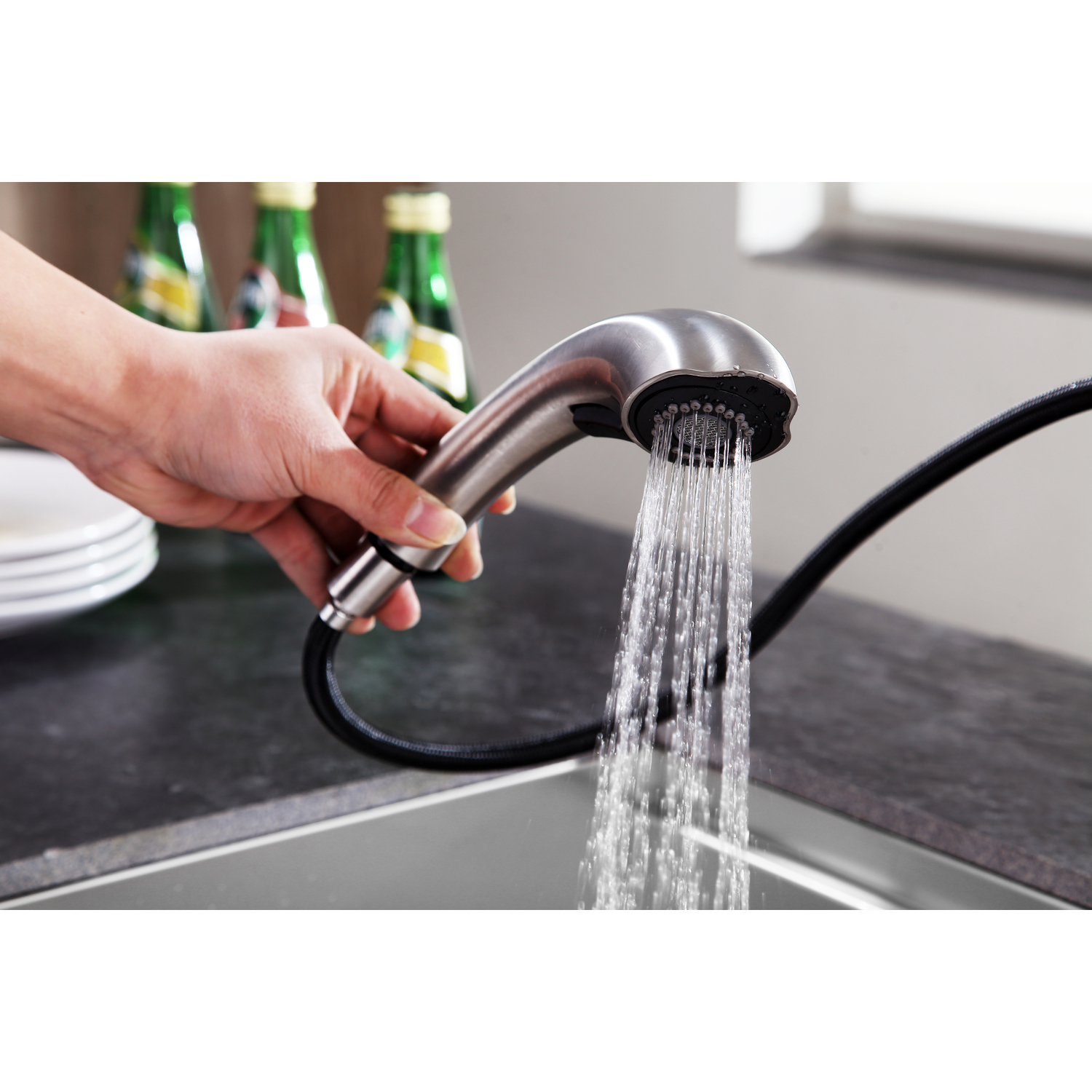 Anzzi Navona Single-Handle Pull-Out Sprayer Kitchen Faucet in Brushed Nickel, 191042019645, KF-AZ206BN