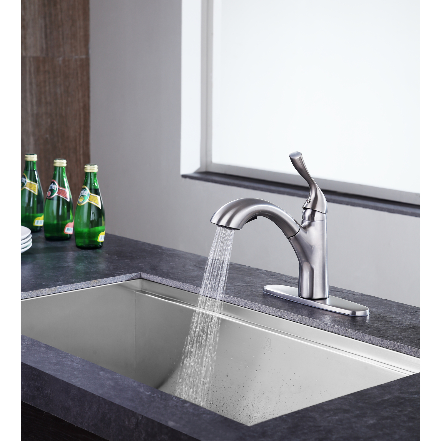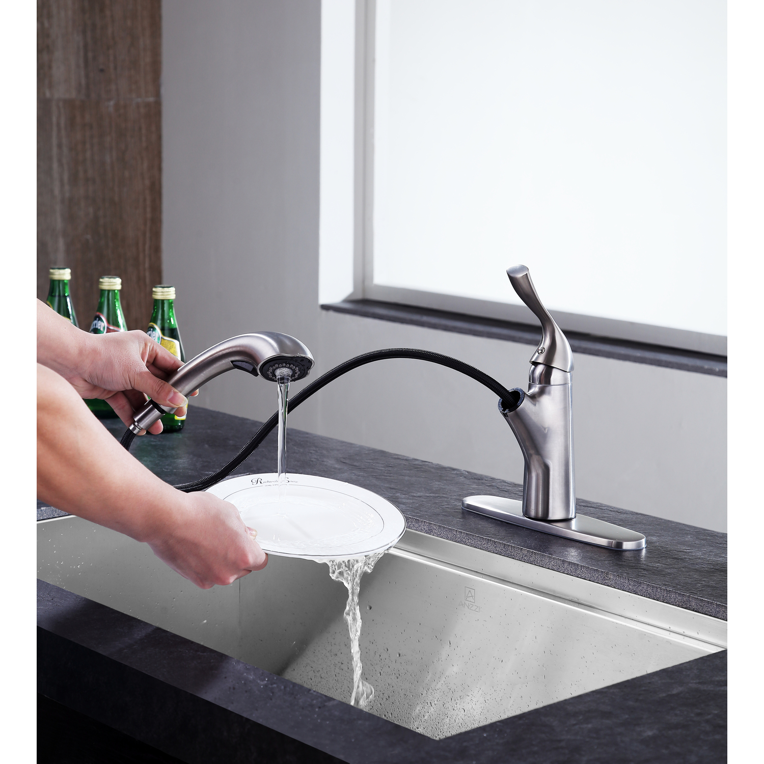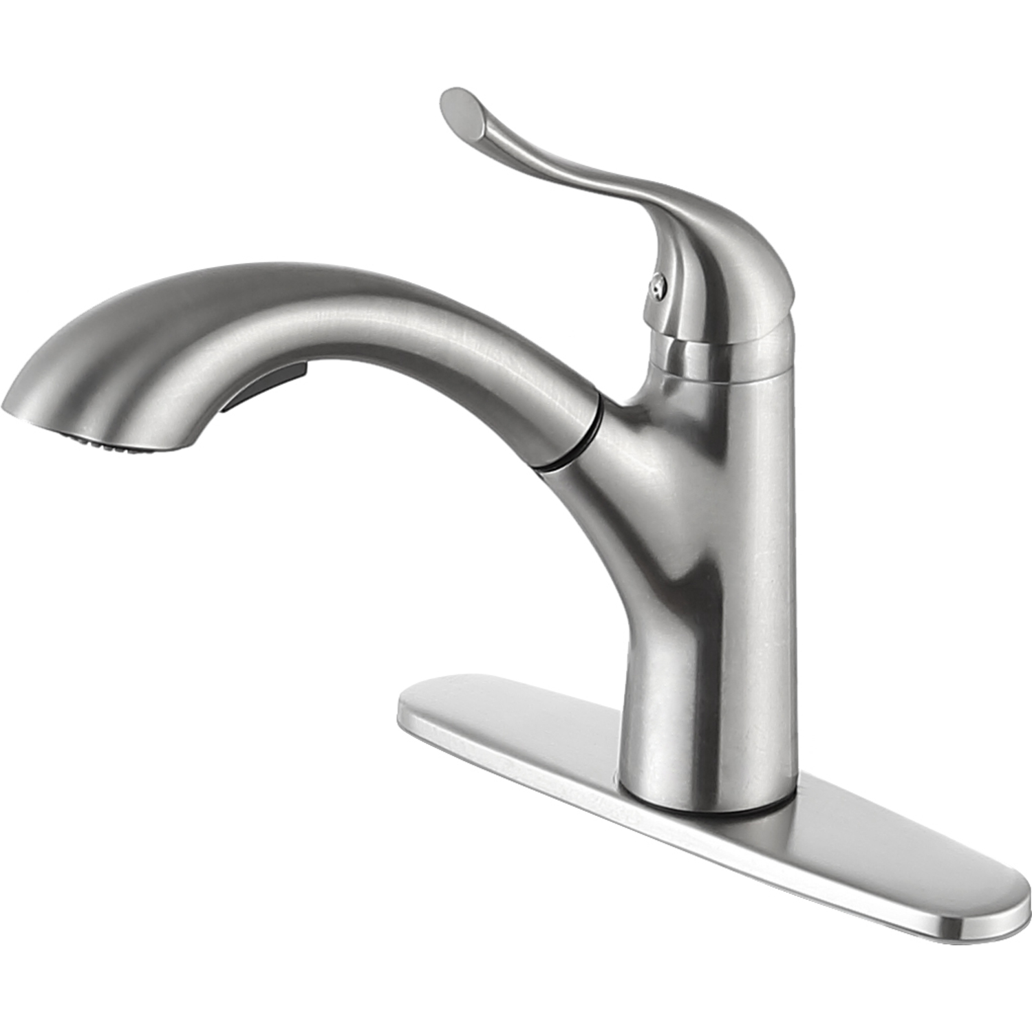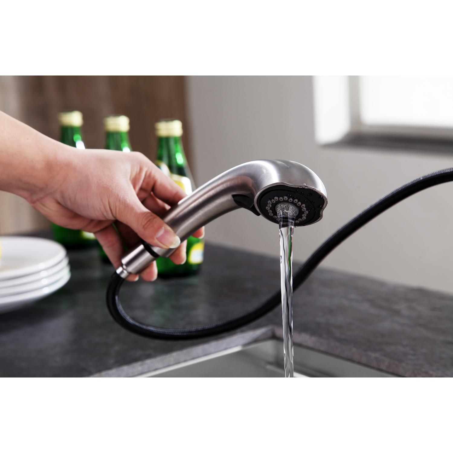 Anzzi Navona Single-Handle Pull-Out Sprayer Kitchen Faucet in Brushed Nickel, 191042019645, KF-AZ206BN
