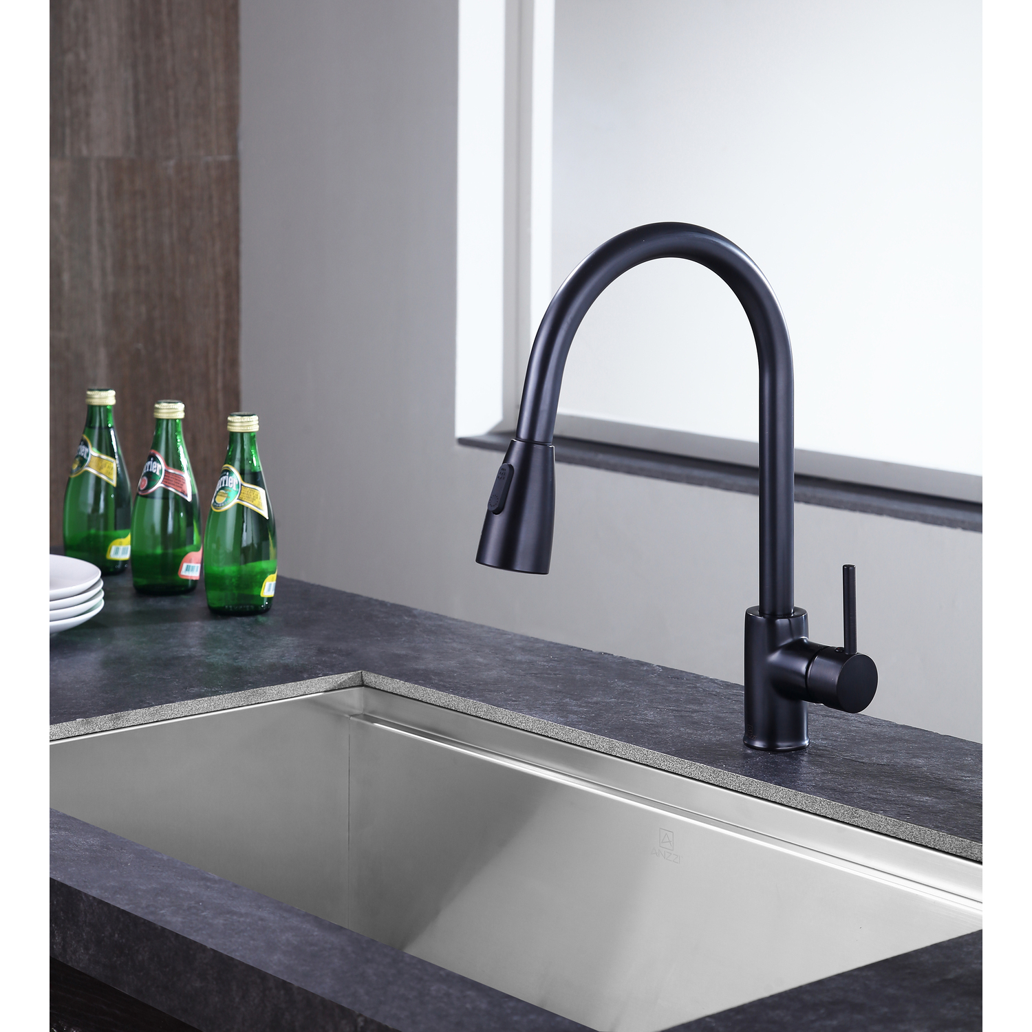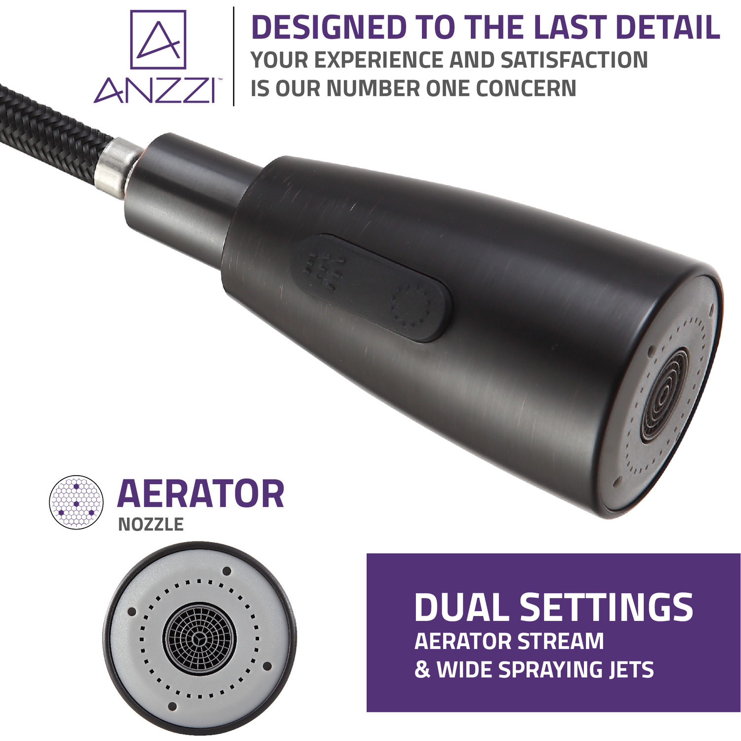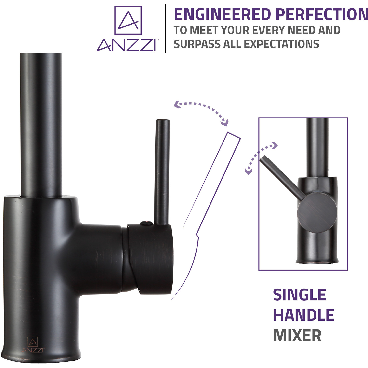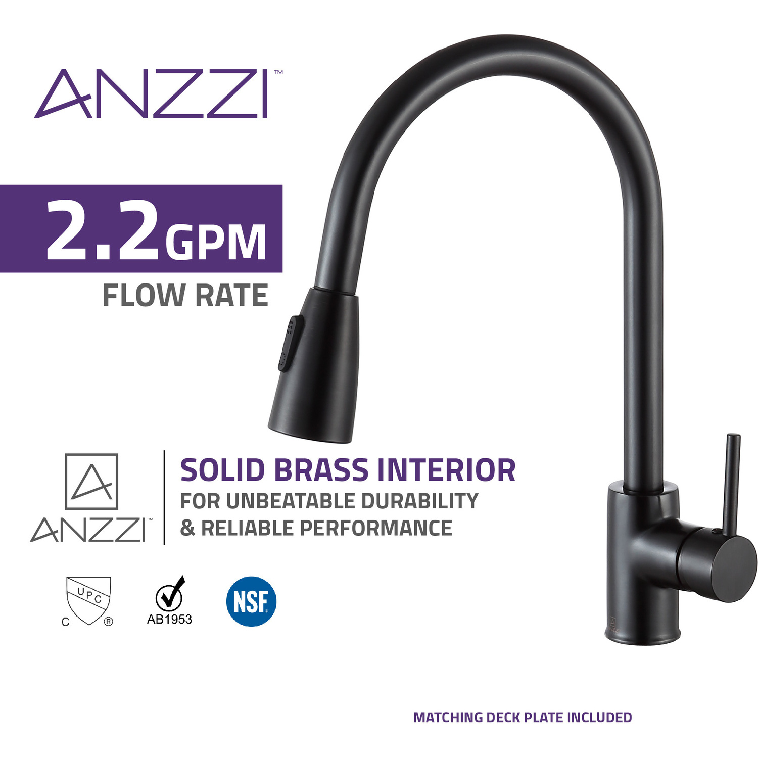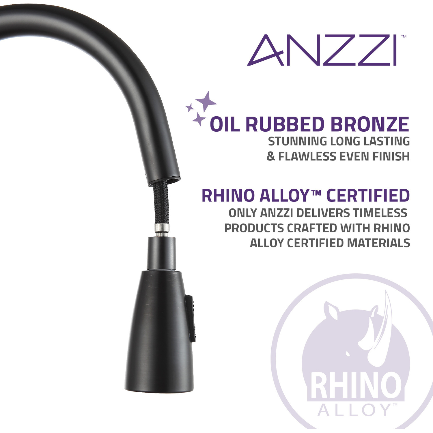 ANZZI is committed to introducing the latest in European bath fixture design to the North American home. ANZZI presents the Sire single handle kitchen sink faucet. Crafted using RHINO ALLOY certified brass interior, marine grade ceramic disk and oil rubbed bronze lead-free rust resistant finish. The elegance and style of our ANZZI faucets is matched by their proven performance and reliability. Which is why our faucets are backed by the ANZZI Limited Lifetime Warranty. Become a member of the ANZZI family and experience why Perfection is our Tradition.Elegant oil rubbed bronze finishRHINO ALLOY certified lead-free solid brass with rust resistant finishSingle (1) handle operationSingle (1) hole installationPull out sprayer with 12.4 in. reachMarine grade ceramic disk includedSpout reach: 8.66 in.; spout height: 7.48 in.Flow rate: 1.8 gpmConnection size: 3/8 in.cUPC, NSF, AB1953 and Watersense certifiedLimited lifetime warrantyShips from factory within 24 hours of orderTo speak to a knowledgeable and dedicated ANZZI specialist simply call 1-844-44-ANZZI or visit us on the web at www.ANZZI.com