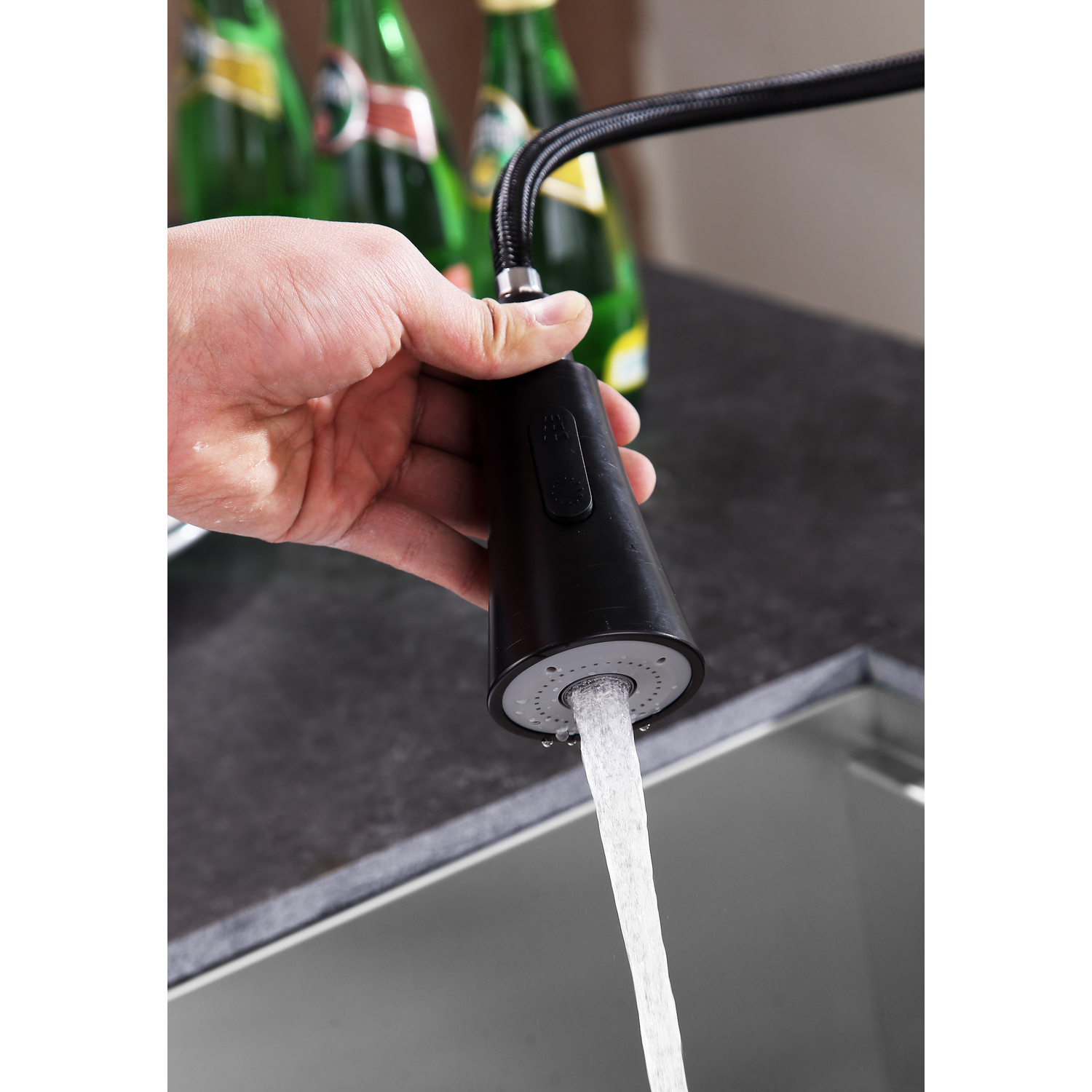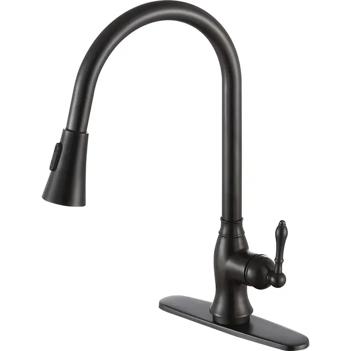 ANZZI is committed to introducing the latest in European bath fixture design to the North American home. ANZZI presents the Rodeo single handle kitchen sink faucet. Crafted using RHINO ALLOY certified brass interior, marine grade ceramic disk and oil rubbed bronze lead-free rust resistant finish. The elegance and style of our ANZZI faucets is matched by their proven performance and reliability. Which is why our faucets are backed by the ANZZI Limited Lifetime Warranty. Become a member of the ANZZI family and experience why Perfection is our Tradition.Elegant oil rubbed bronze finishRHINO ALLOY certified lead-free solid brass with rust resistant finishSingle (1) handle operationSingle (1) hole installationPull out sprayer with 13.4 in. reachMarine grade ceramic disk includedSpout reach: 9.45 in.; spout height: 7.87 in.Flow rate: 1.8 gpmConnection size: 3/8 in.cUPC, NSF, AB1953 and CEC certifiedLimited lifetime warrantyShips from factory within 24 hours of orderTo speak to a knowledgeable and dedicated ANZZI specialist simply call 1-844-44-ANZZI or visit us on the web at www.ANZZI.com