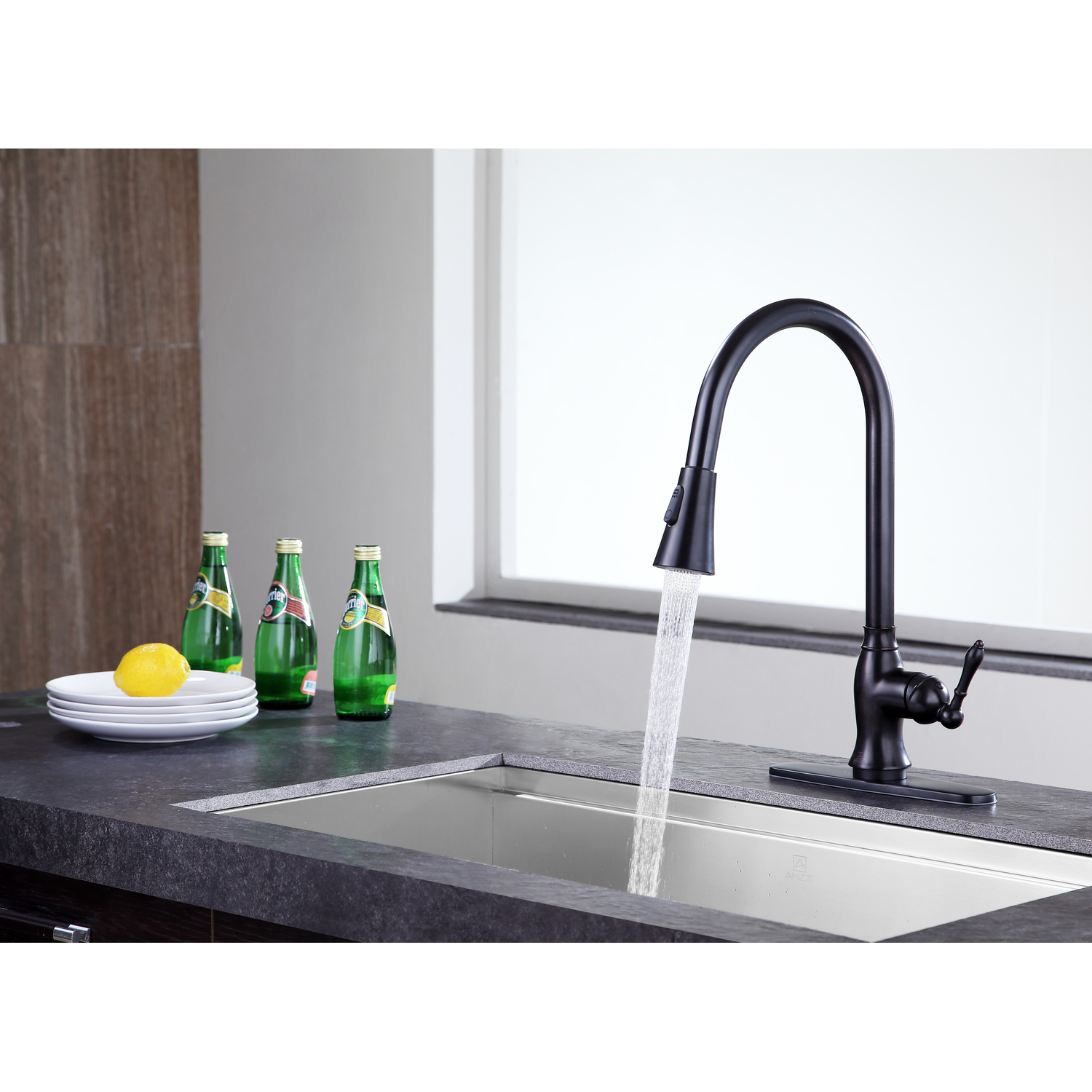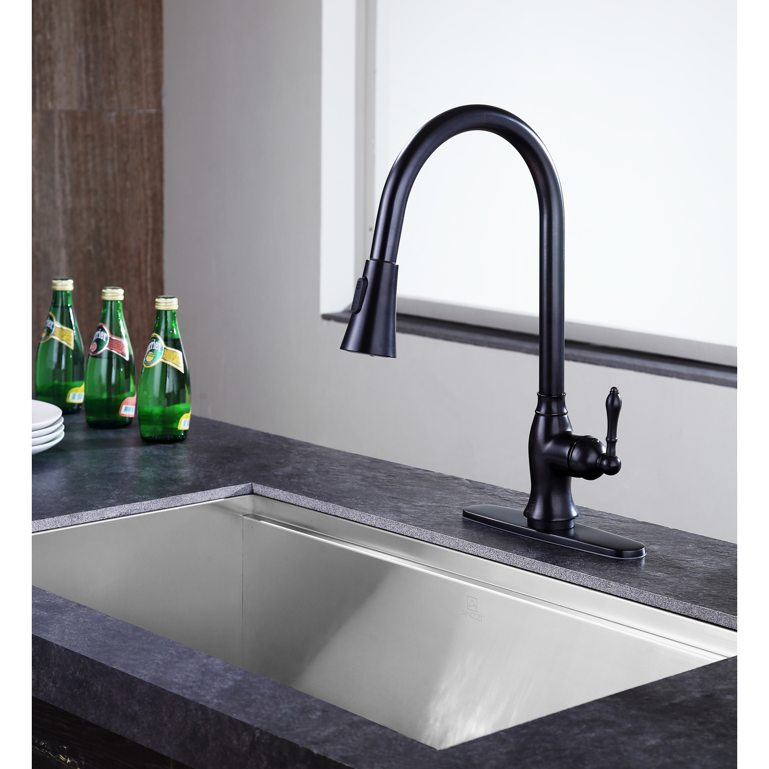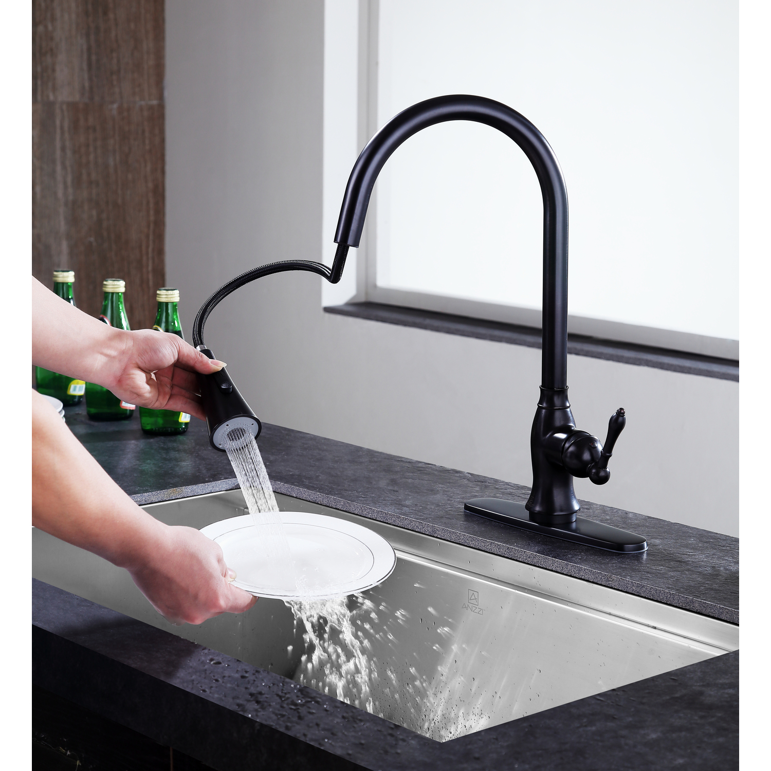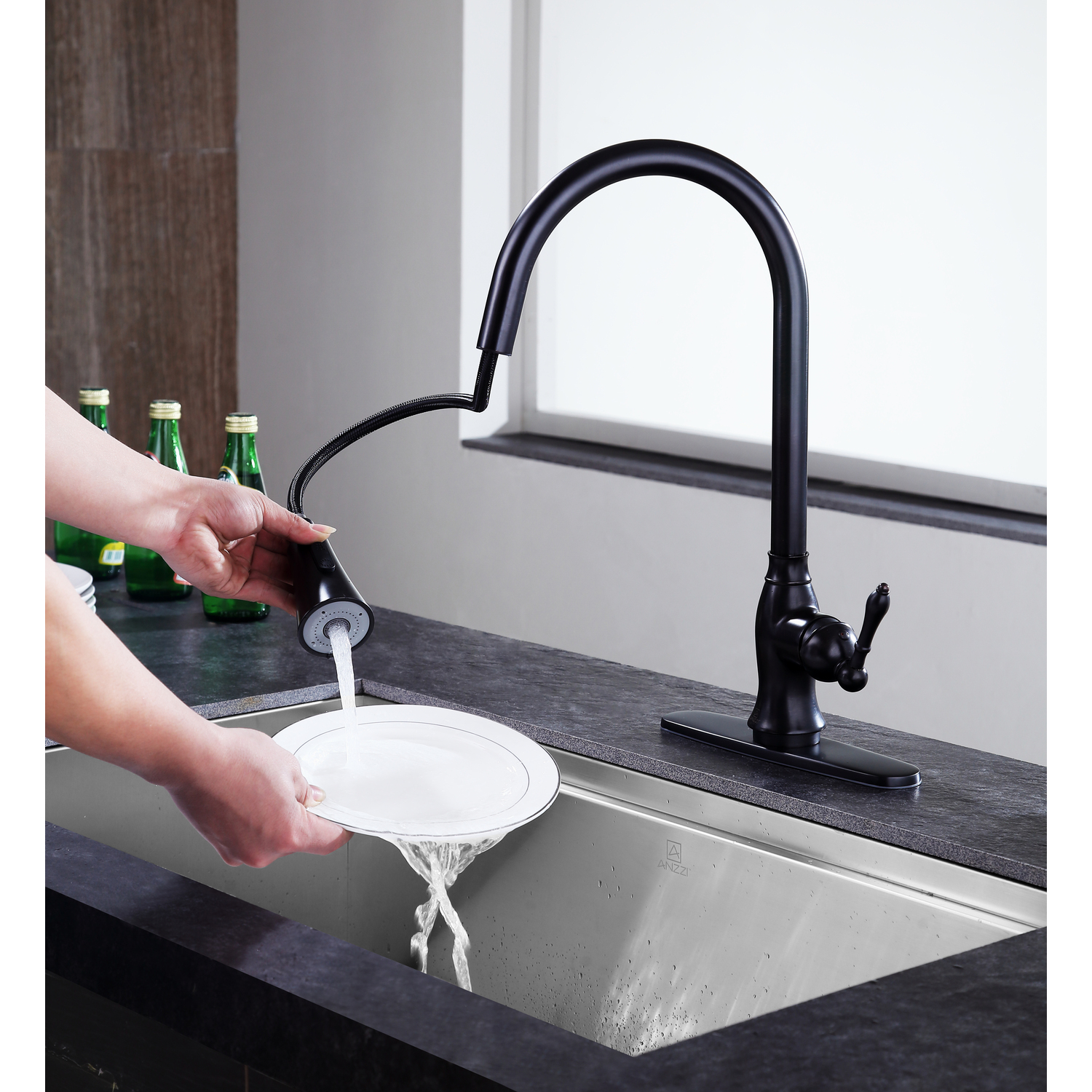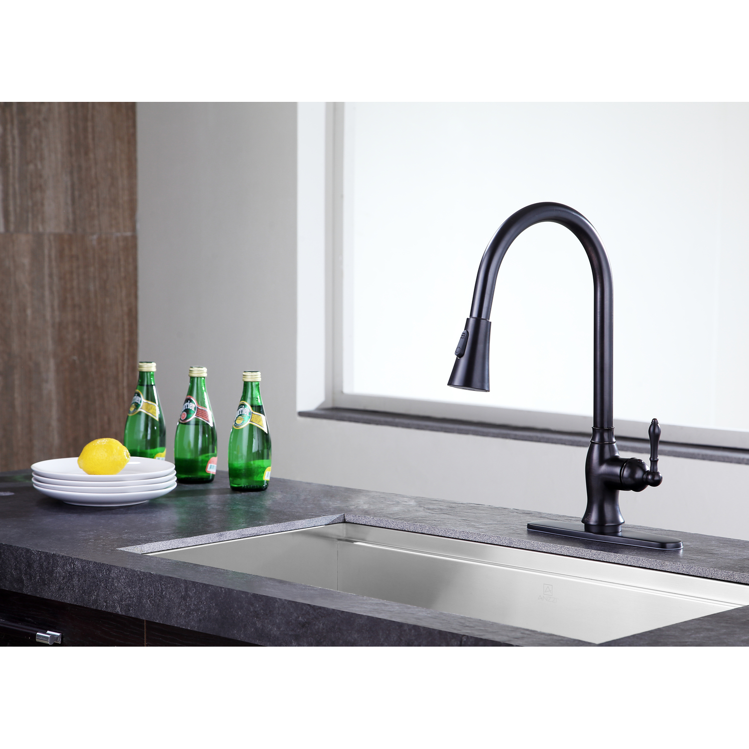 Anzzi Rodeo Single-Handle Pull-Out Sprayer Kitchen Faucet in Oil Rubbed Bronze, 191042017917, KF-AZ214ORB