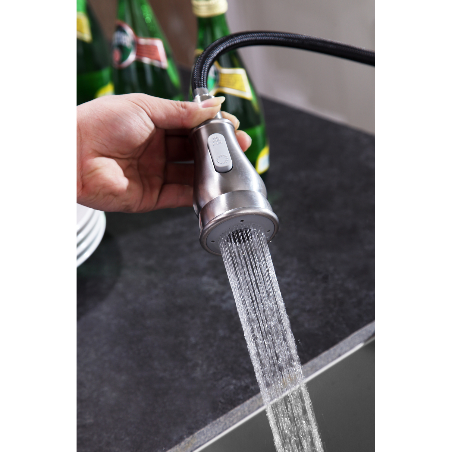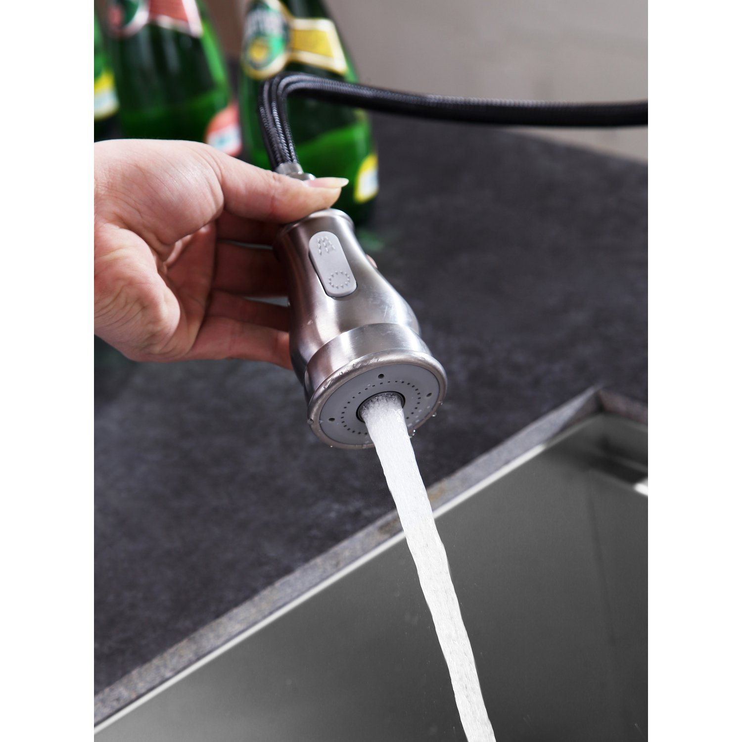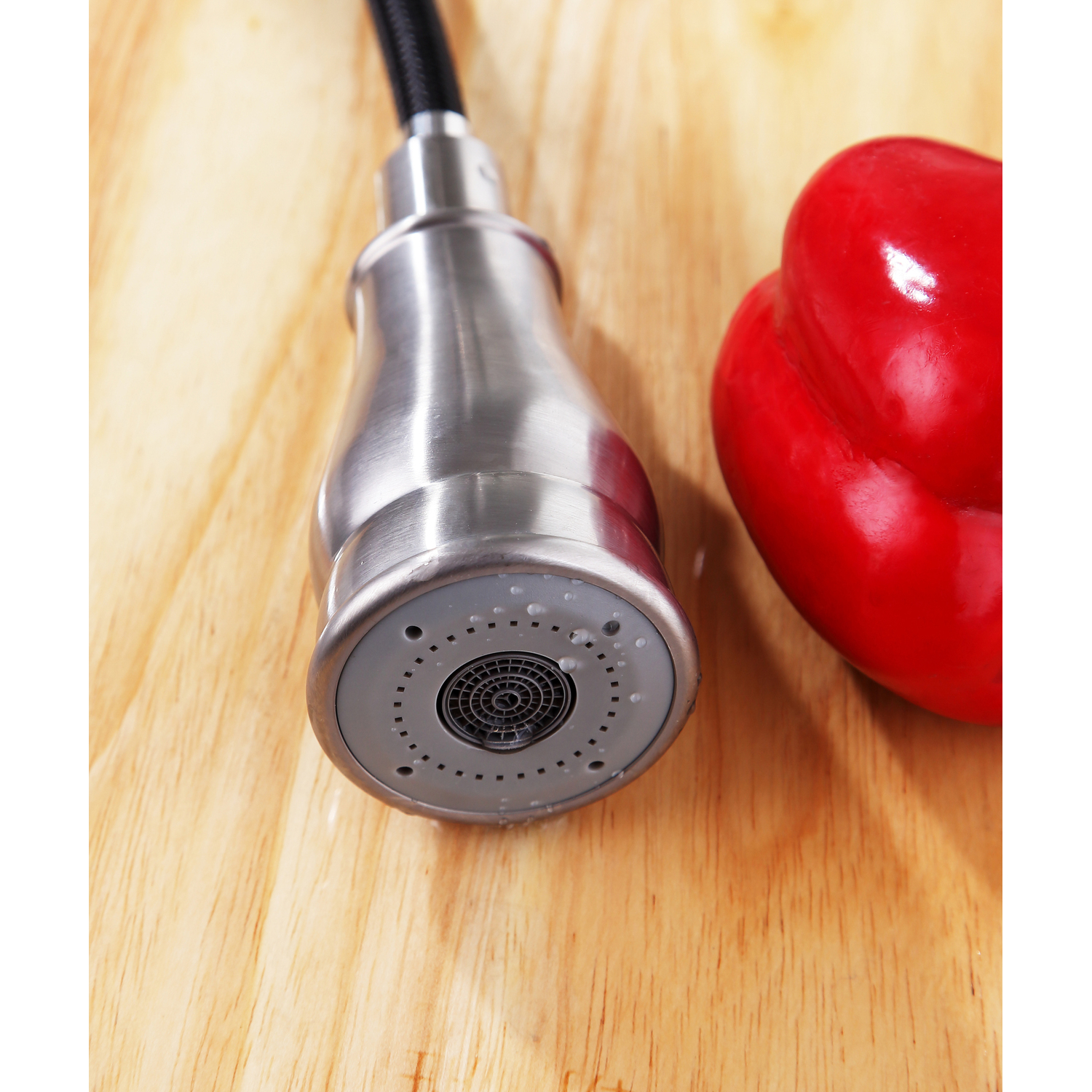 - Pull out sprayer with 12.6 in. reach
