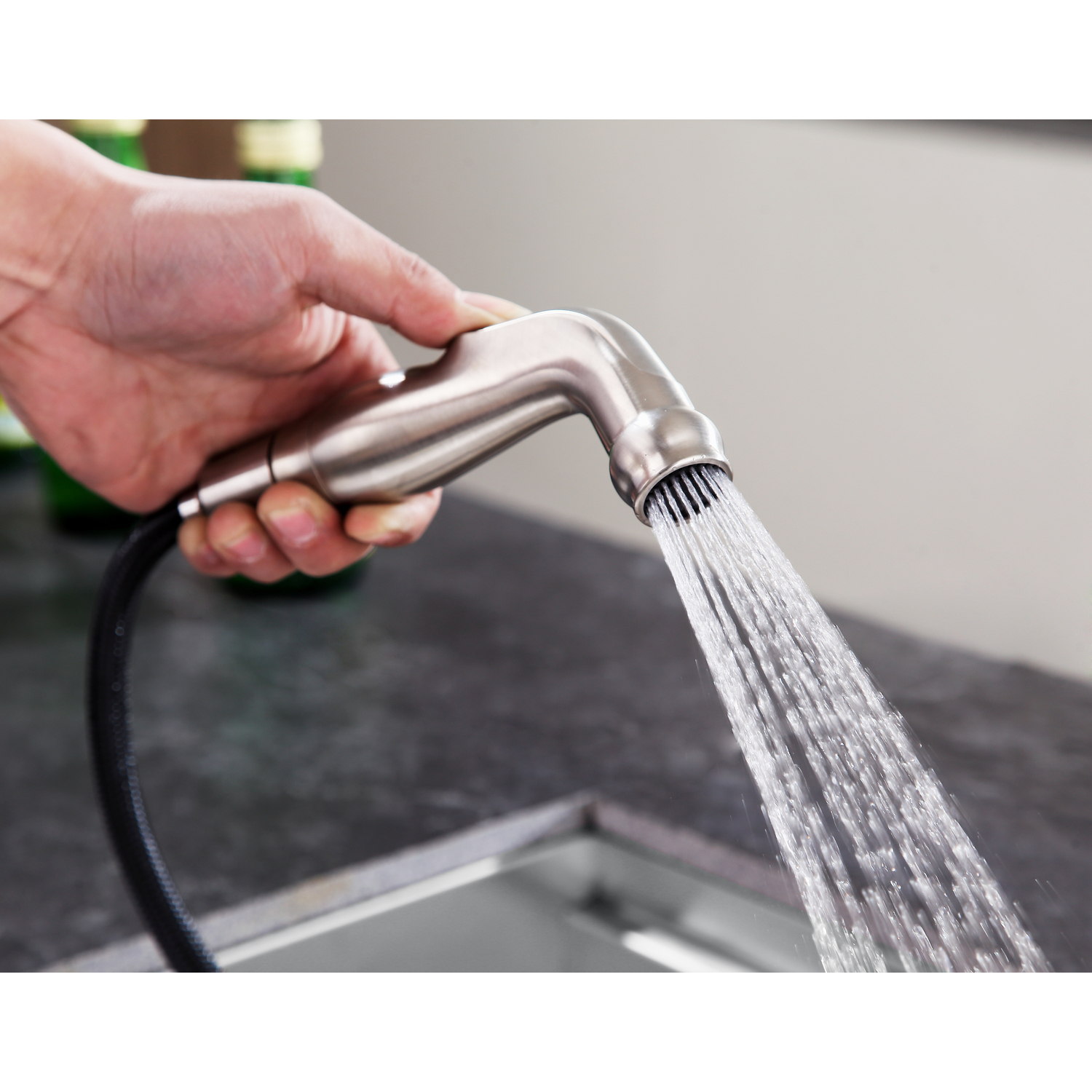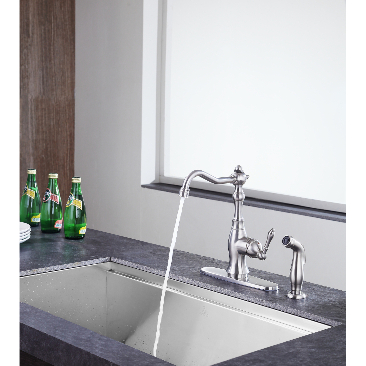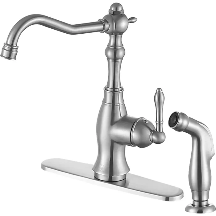 Anzzi Highland Single-Handle Standard Kitchen Faucet with Side Sprayer in Brushed Nickel, 191042019799, KF-AZ224BN