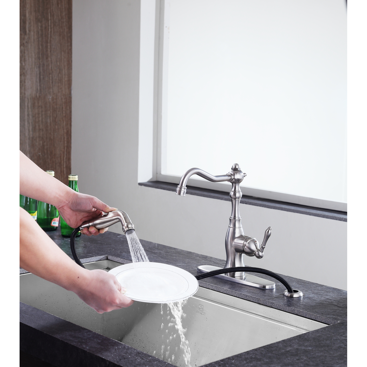 ANZZI is committed to introducing the latest in European bath fixture design to the North American home. ANZZI presents the Highland Series single handle kitchen sink faucet. Crafted using RHINO ALLOY certified brass interior, marine grade ceramic disk and brushed nickel lead-free rust resistant finish. The elegance and style of our ANZZI faucets is matched by their proven performance and reliability. Which is why our faucets are backed by the ANZZI Limited Lifetime Warranty. Become a member of the ANZZI family and experience why Perfection is our Tradition.Stunning brushed nickel finishRHINO ALLOY certified lead-free solid brass with rust resistant finishSingle (1) handle operationTwo (2) hole installationMarine grade ceramic disk includedSpout reach: 7.09 in.; spout height: 8.46 in.Flow rate: 1.8 gpmConnection size: 3/8 in.cUPC, NSF, AB1953 and CEC certifiedLimited lifetime warrantyShips from factory within 24 hours of orderTo speak to a knowledgeable and dedicated ANZZI specialist simply call 1-844-44-ANZZI or visit us on the web at www.ANZZI.com