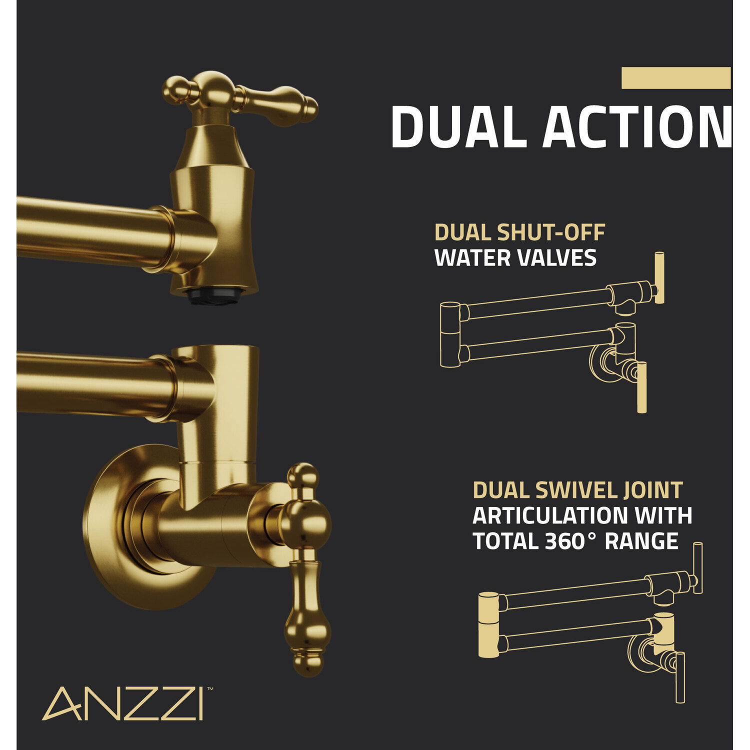 Anzzi Marca 360-Degree 24 inch Wall Mounted Pot Filler with Dual Swivel in Brushed Gold, 191042070851, KF-AZ259BG