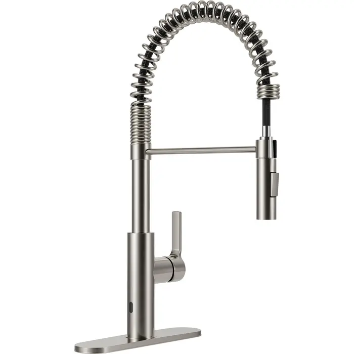 Anzzi Ola Hands Free Touchless 1-Handle Pull-Down Sprayer Kitchen Faucet with Motion Sense and Fan Sprayer in Brushed Nickel, 191042072312, KF-AZ303BN