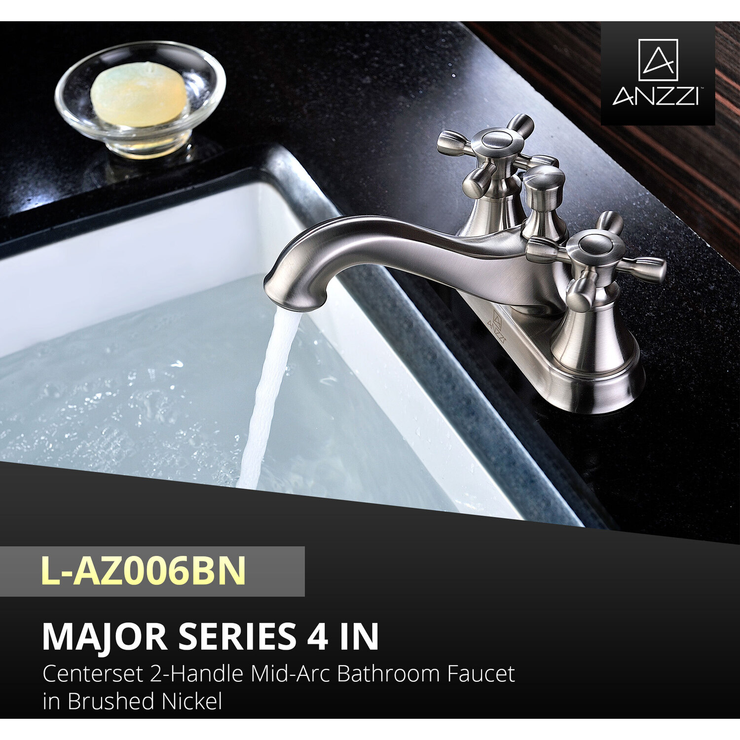 Anzzi Major Series 4 in. Centerset 2-Handle Mid-Arc Bathroom Faucet in Brushed Nickel, 848308074039, L-AZ006BN