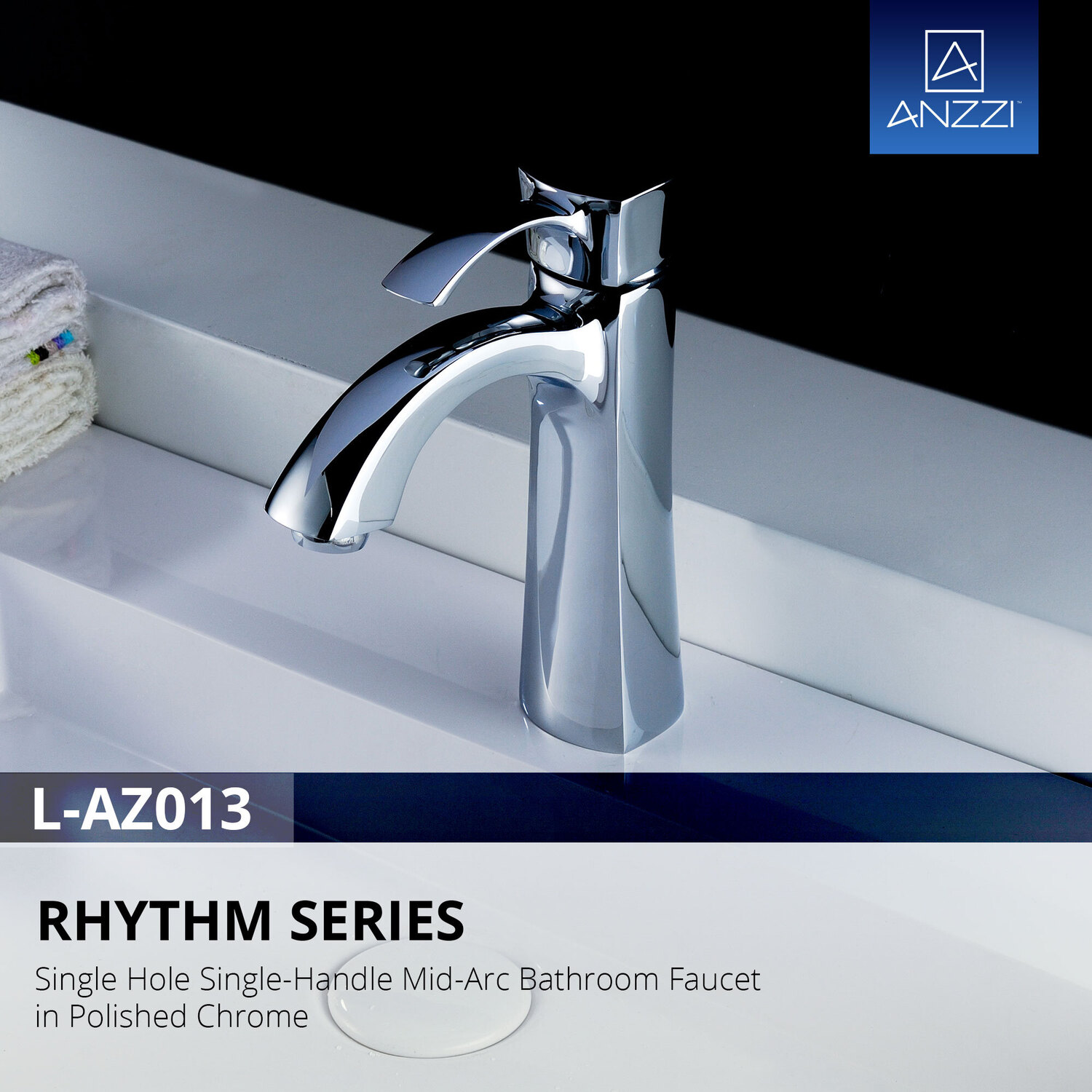 Anzzi Rhythm Series Single Hole Single-Handle Mid-Arc Bathroom Faucet in Polished Chrome, 848308071250, L-AZ013