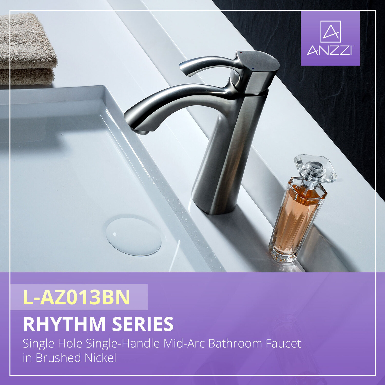 ANZZI is committed to introducing the latest in European bath fixture design to the North American home. ANZZI presents the Rhythm Series Single Handle Bathroom Sink Faucet. Crafted using lead-free RHINO ALLOY certified brass as the interior and our Traditional Brushed Nickel rust resistant finish. This all metal combination of high quality materials ensures you will enjoy a flawlessly performing faucet for many years to come. The deceptively simple single handle design allows for complete and easy control of both water flow and temperature while maintain the fine minimalist aesthetic to match with any modern or contemporary décor style. The ANZZI Rhythm Series is listed certified under cUPC, NSF, AB1953, Watersense, ADA for installation within North America.Traditional Brushed Nickel finishRHINO ALLOY certified lead-free solid brass with rust resistant finishSingular (1) lever handle controlElegantly arching spout inspired by the latest European stylesDeck mounted single (1) hole installationSpout Reach: 4.85 in.; Spout Height: 4.72 in.Flow rate: 1.2 gpmcUPC, NSF, AB1953, Watersense, ADA certified and listed for North AmericaLimited Lifetime WarrantyTo speak to a knowledgeable and dedicated ANZZI specialist simply call 1-844-44-ANZZI or visit us on the web at www.ANZZI.com