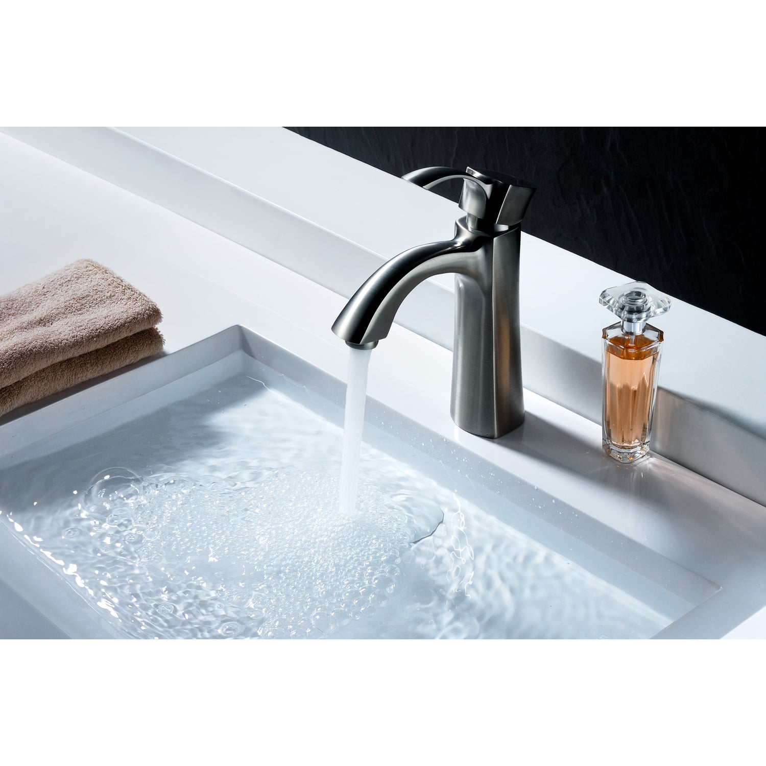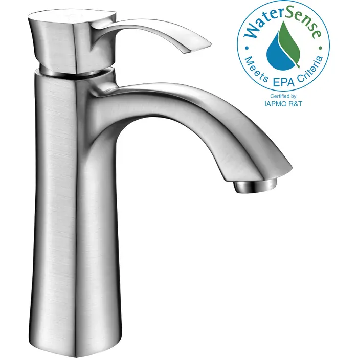 ANZZI is committed to introducing the latest in European bath fixture design to the North American home. ANZZI presents the ANZZI Series Single Handle Bathroom Sink Faucet. Crafted using lead-free RHINO ALLOY certified brass as the interior and our Traditional Brushed Nickel rust resistant finish. This all metal combination of high quality materials ensures you will enjoy a flawlessly performing faucet for many years to come. The deceptively simple single handle design allows for complete and easy control of both water flow and temperature while maintain the fine minimalist aesthetic to match with any modern or contemporary décor style. The ANZZI Series is listed certified under cUPC, NSF, AB1953, Watersense, ADA for installation within North America.Traditional Brushed Nickel finishRHINO ALLOY certified lead-free solid brass with rust resistant finishSingular (1) lever handle controlElegantly arching spout inspired by the latest European stylesDeck mounted single (1) hole installationSpout Reach: 4.85 in.; Spout Height: 4.72 in.Flow rate: 1.2 gpmcUPC, NSF, AB1953, Watersense, ADA certified and listed for North AmericaLimited Lifetime WarrantyTo speak to a knowledgeable and dedicated ANZZI specialist simply call 1-844-44-ANZZI or visit us on the web at www.ANZZI.com