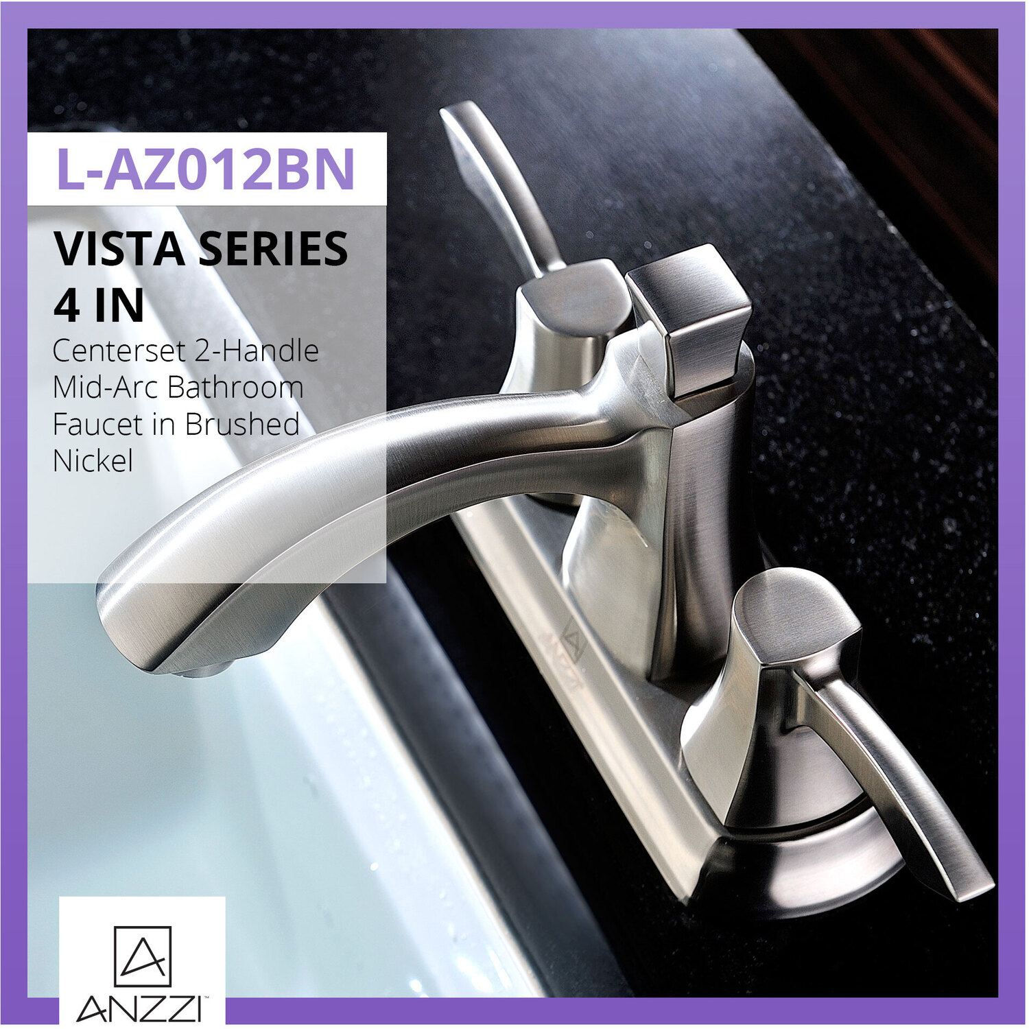 Anzzi Vista Series 4 in. Centerset 2-Handle Mid-Arc Bathroom Faucet in Brushed Nickel, 848308074091, L-AZ014BN
