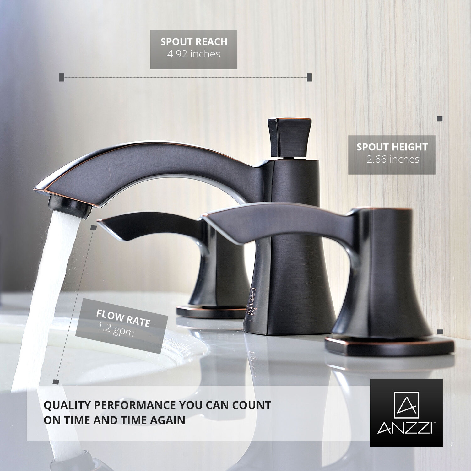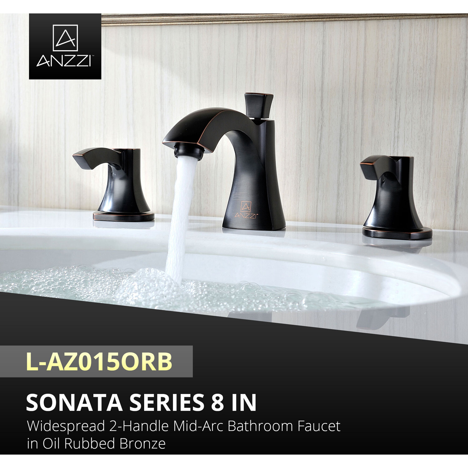 ANZZI is committed to introducing the latest in European bath fixture design to the North American home. ANZZI presents the Sonata Series 2-Handles Bathroom Sink Faucet. Crafted using lead-free RHINO ALLOY certified brass as the interior and our Opulent Oil Rubbed Bronze rust resistant finish. This all metal combination of high quality materials ensures you will enjoy a flawlessly performing faucet for many years to come. The elegantly simple dual handle design allows for complete and easy control of both water flow and temperature while maintain the fine minimalist aesthetic to match with any modern or contemporary décor style. The ANZZI Sonata Series is listed certified under cUPC, NSF, AB1953, Watersense, ADA for installation within North America.Opulent Oil Rubbed Bronze finishRHINO ALLOY certified lead-free solid brass with rust resistant finishTwin dual (2) lever handle controlElegantly arching spout inspired by the latest European stylesDeck mounted three (3) hole installationSpout Reach: 4.92 in.; Spout Height: 2.66 in.Flow rate: 1.2 gpmcUPC, NSF, AB1953, Watersense, ADA certified and listed for North AmericaLimited Lifetime WarrantyTo speak to a knowledgeable and dedicated ANZZI specialist simply call 1-844-44-ANZZI or visit us on the web at www.ANZZI.com