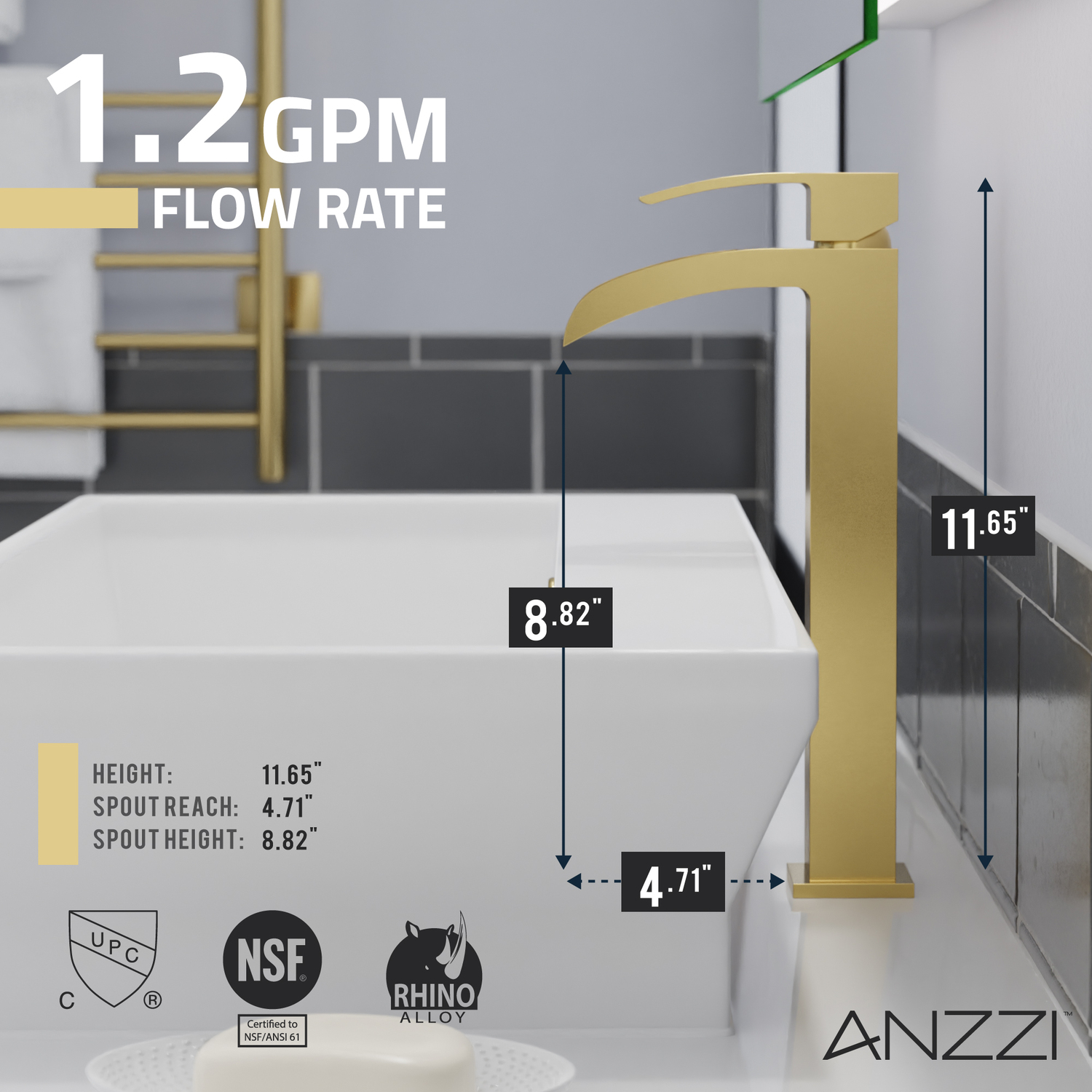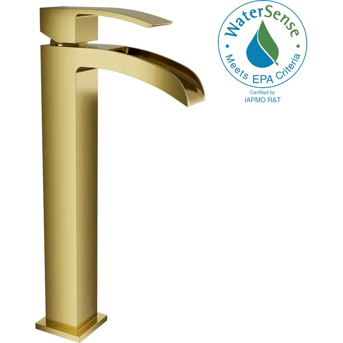 ANZZI is committed to introducing the latest in European bath fixture design to the North American home. ANZZI presents the Key Series Single Handle Vessel Sink Faucet. Crafted using lead-free RHINO ALLOY certified brass as the interior and our Lustrous Brushed Gold rust resistant finish. This all metal combination of high quality materials ensures you will enjoy a flawlessly performing faucet for many years to come. The deceptively simple single handle design allows for complete and easy control of both water flow and temperature while maintain the fine minimalist aesthetic to match with any modern or contemporary décor style. The ANZZI Key Series is listed certified under cUPC, NSF, AB1953, Watersense, ADA for installation within North America.Like what you see? You can make this bathroom suite a reality with ANZZIALSO AVAILABLE FOR PURCHASE (Search #) : Shower Door (SD-AZ8077-01BG), Towel Warmer (TW-WM104BG), LED Mirror (BA-LMDFXBT005WH), Shower Head (SH-AZ101BG), Vessel Sink (LS-AZ118), Smart Bidet (TL-STSF851WH), Bathtub (FT-AZ098), Bath Faucet (FS-AZ0047BG)Lustrous Brushed Gold finishRHINO ALLOY certified lead-free solid brass with rust resistant finishSingular (1) lever handle controlElegantly arching spout inspired by the latest European stylesDeck mounted single (1) hole installationSpout Reach: 4.71 in.; Spout Height: 8.82 in.Flow rate: 1.2 gpmcUPC, NSF, AB1953, Watersense, ADA certified and listed for North AmericaLimited Lifetime WarrantyTo speak to a knowledgeable and dedicated ANZZI specialist simply call 1-844-44-ANZZI or visit us on the web at www.ANZZI.com