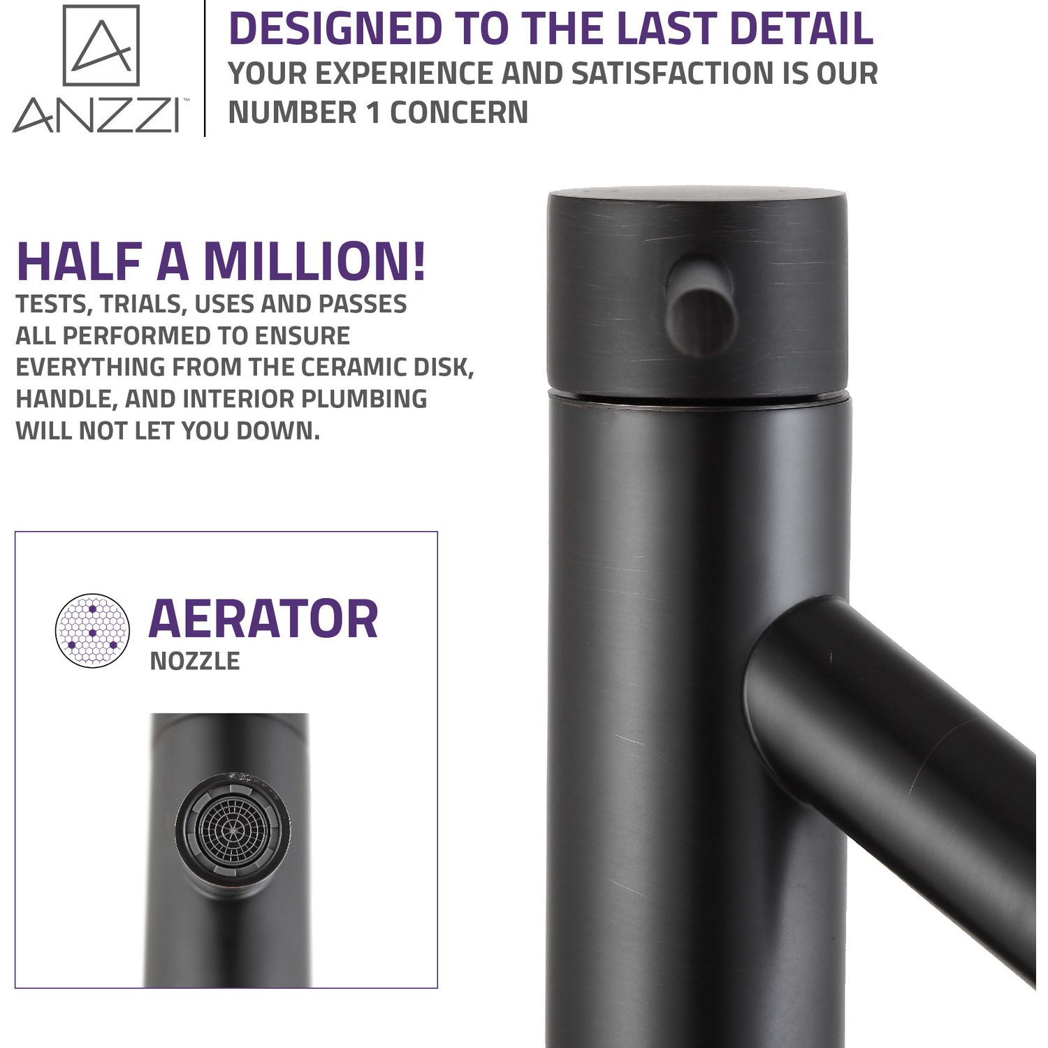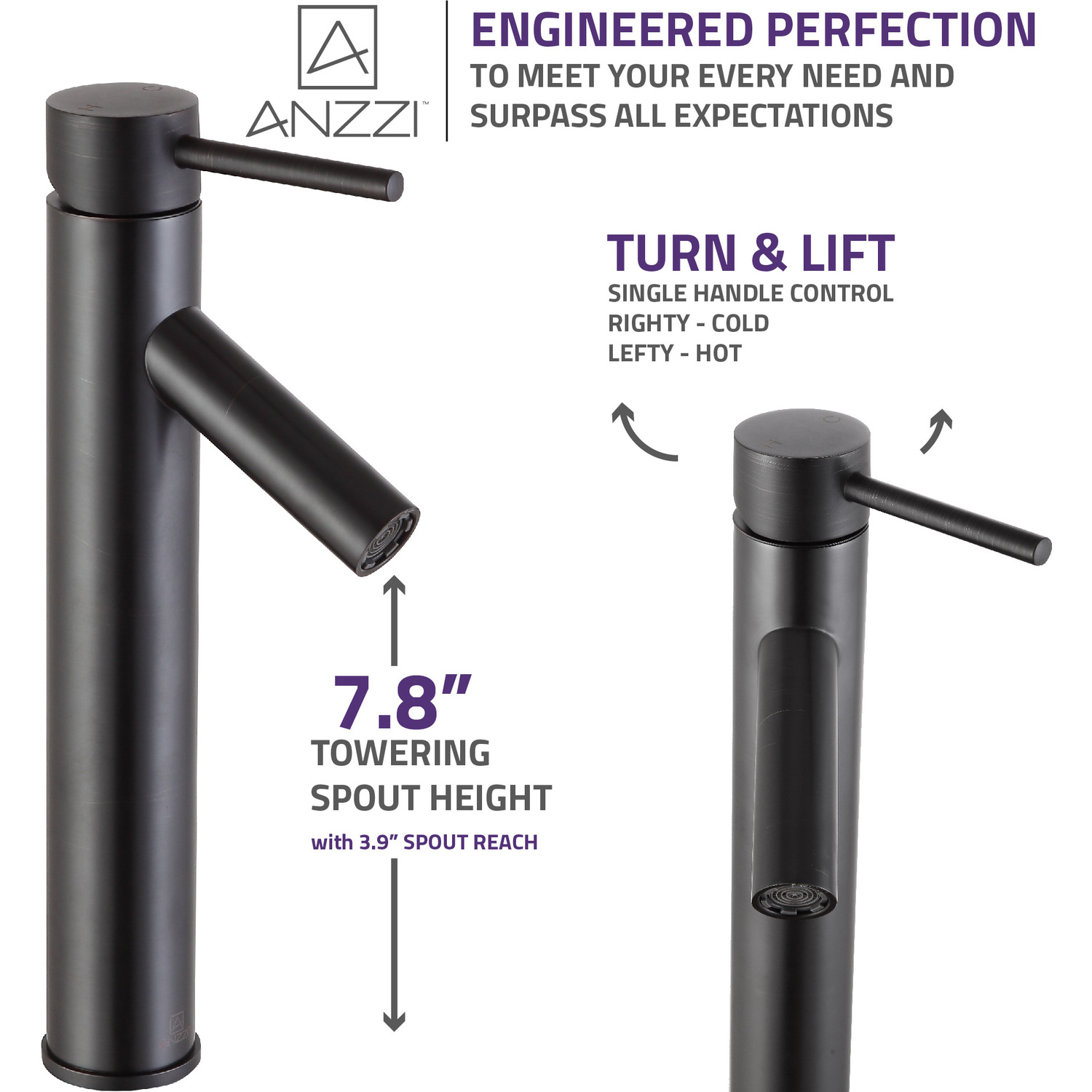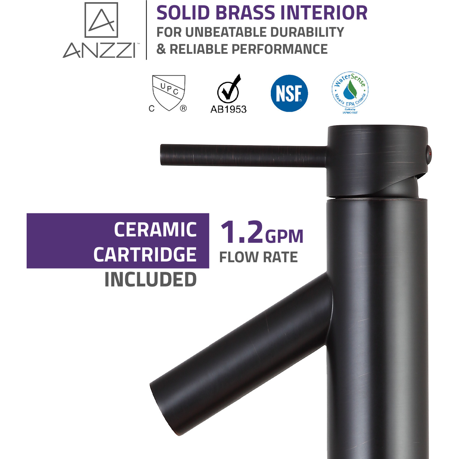 ANZZI is committed to introducing the latest in European bath fixture design to the North American home. ANZZI presents the Valle single handle bathroom sink faucet. Crafted using RHINO ALLOY certified brass interior, marine grade ceramic disk and oil rubbed bronze lead-free rust resistant finish. The elegance and style of our ANZZI faucets is matched by their proven performance and reliability, which is why our faucets are backed by the ANZZI Limited Lifetime Warranty. Become a member of the ANZZI family and experience why Perfection is our Tradition.Elegant oil rubbed bronze finishRHINO ALLOY certified lead-free solid brass with rust resistant finishSingle (1) handle operationSingle (1) hole installationMarine grade ceramic disk includedSpout reach: 3.94 in.; spout height: 7.87 in.Flow rate: 1.2 gpmConnection size: 3/8 in.cUPC, NSF, AB1953 and Watersense certifiedLimited lifetime warrantyShips from factory within 24 hours of orderTo speak to a knowledgeable and dedicated ANZZI specialist simply call 1-844-44-ANZZI or visit us on the web at www.ANZZI.com