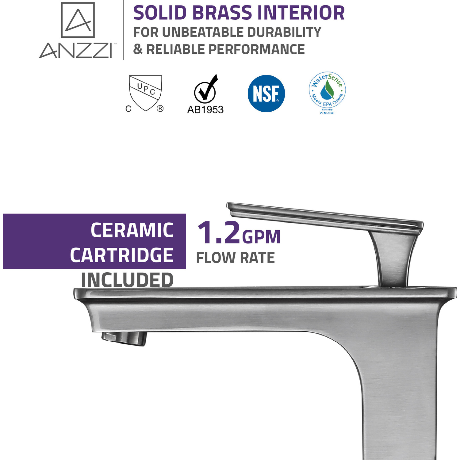 - cUPC, NSF, AB1953 and Watersense certified