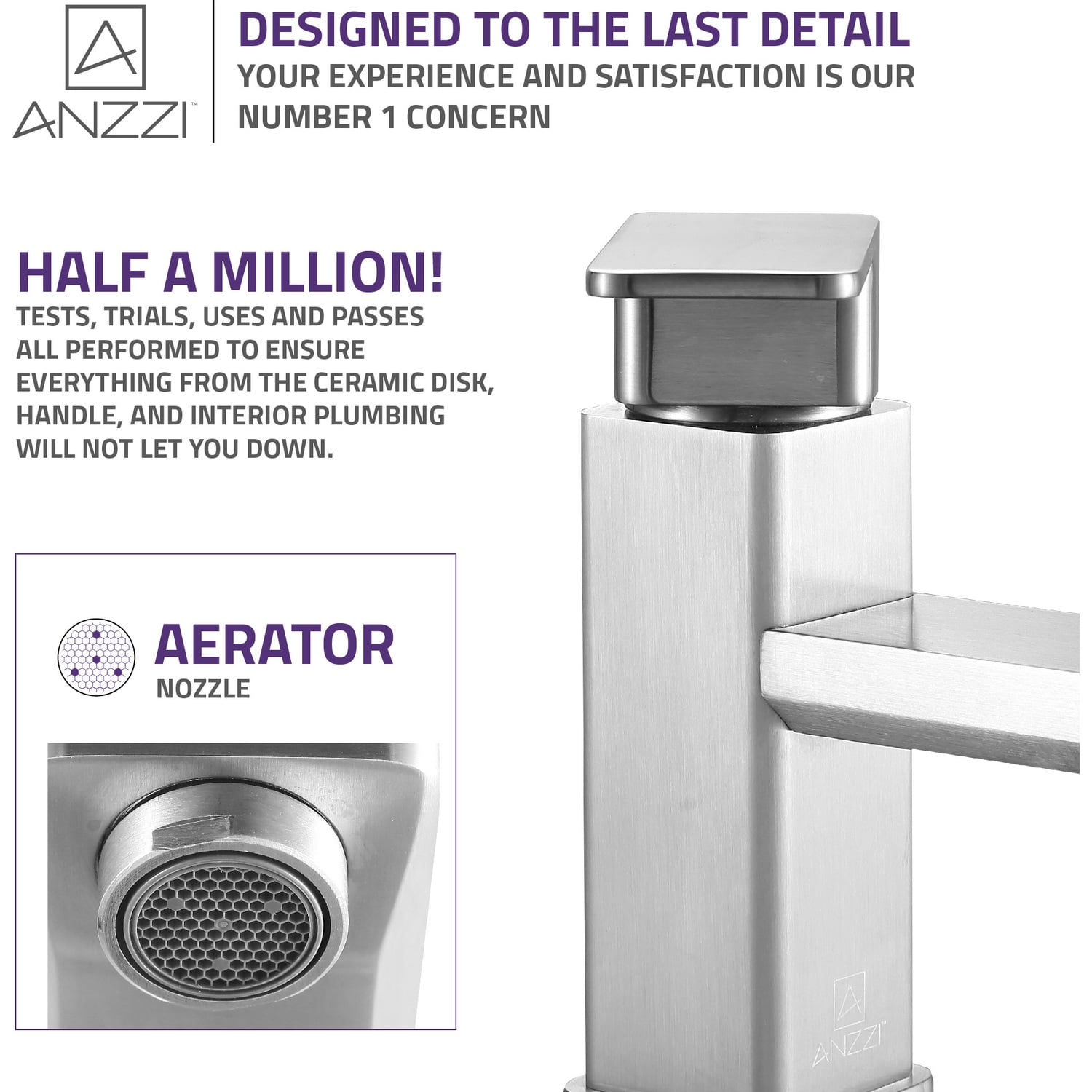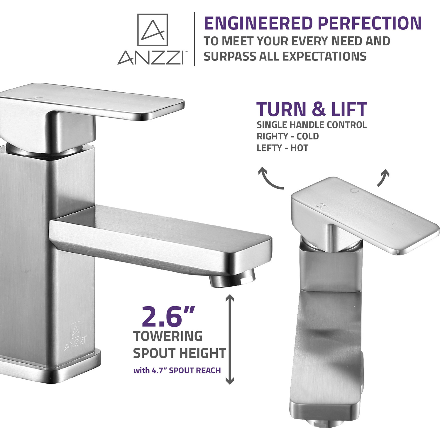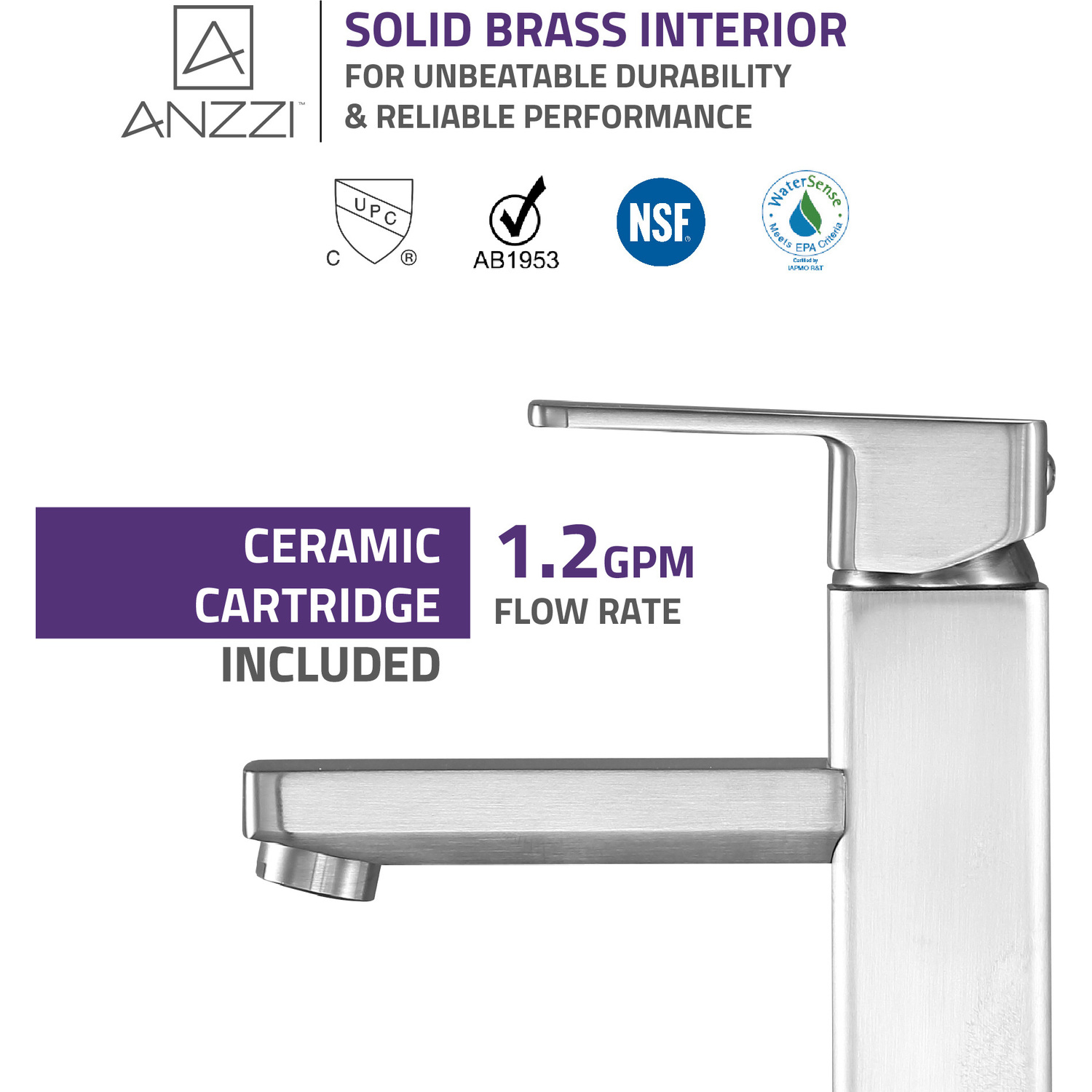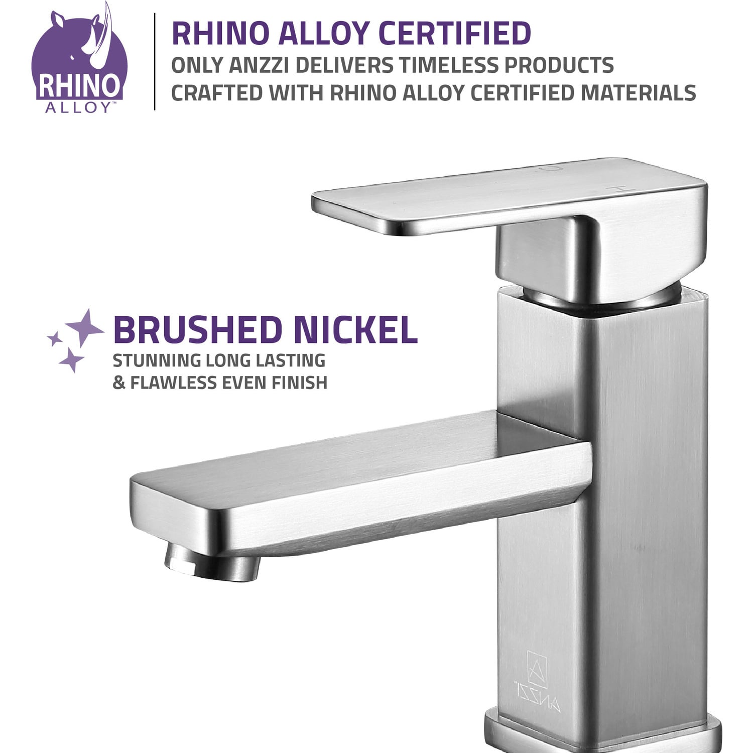 ANZZI is committed to introducing the latest in European bath fixture design to the North American home. ANZZI presents the Naiadi single handle bathroom sink faucet. Crafted using RHINO ALLOY certified brass interior, marine grade ceramic disk and brushed nickel lead-free rust resistant finish. The elegance and style of our ANZZI faucets is matched by their proven performance and reliability, which is why our faucets are backed by the ANZZI Limited Lifetime Warranty. Become a member of the ANZZI family and experience why Perfection is our Tradition.Stunning brushed nickel finishRHINO ALLOY certified lead-free solid brass with rust resistant finishSingle (1) handle operationSingle (1) hole installationMarine grade ceramic disk includedSpout reach: 4.72 in.; spout height: 2.68 in.Flow rate: 1.2 gpmConnection size: 3/8 in.cUPC, NSF, AB1953 and Watersense certifiedLimited lifetime warrantyShips from factory within 24 hours of orderTo speak to a knowledgeable and dedicated ANZZI specialist simply call 1-844-44-ANZZI or visit us on the web at www.ANZZI.com