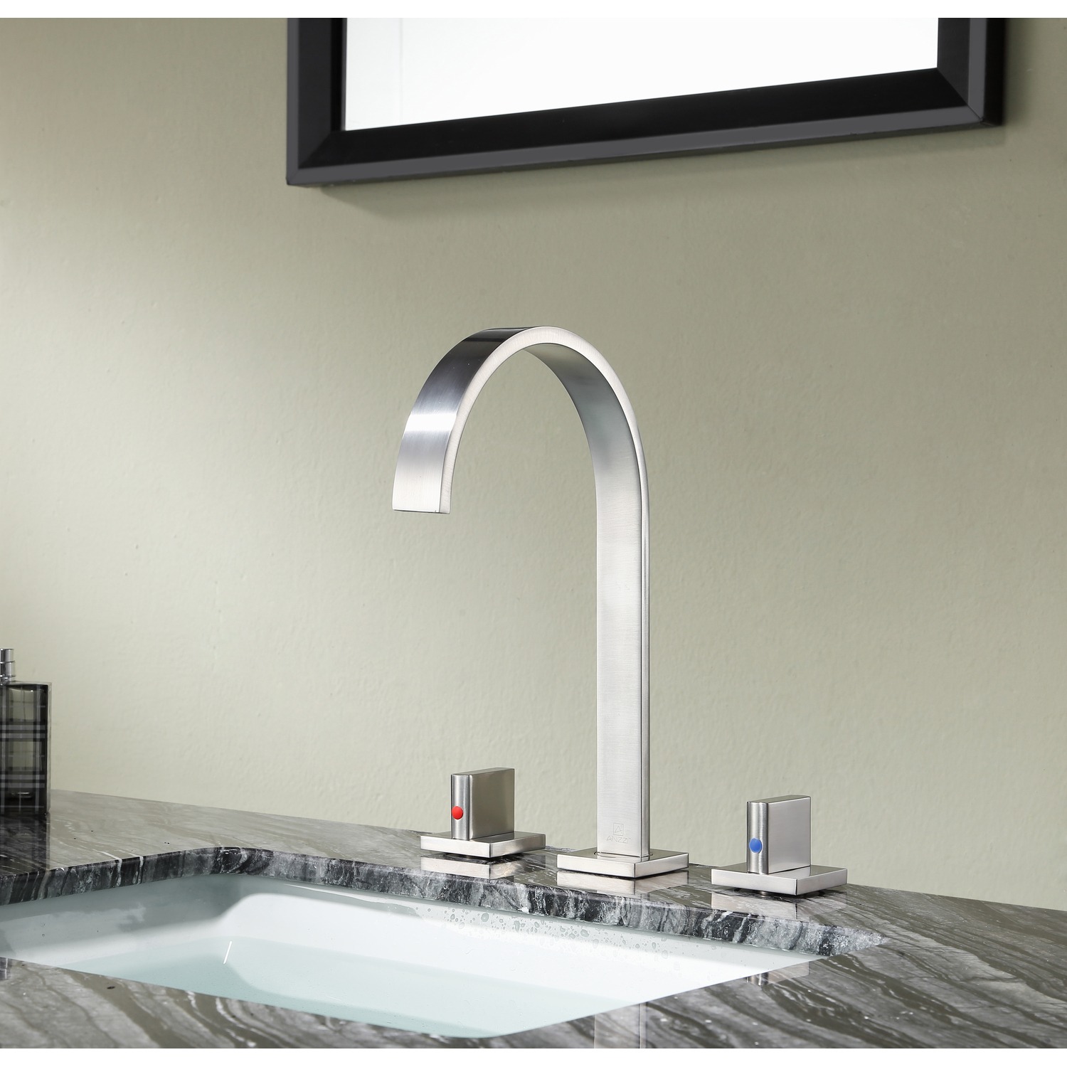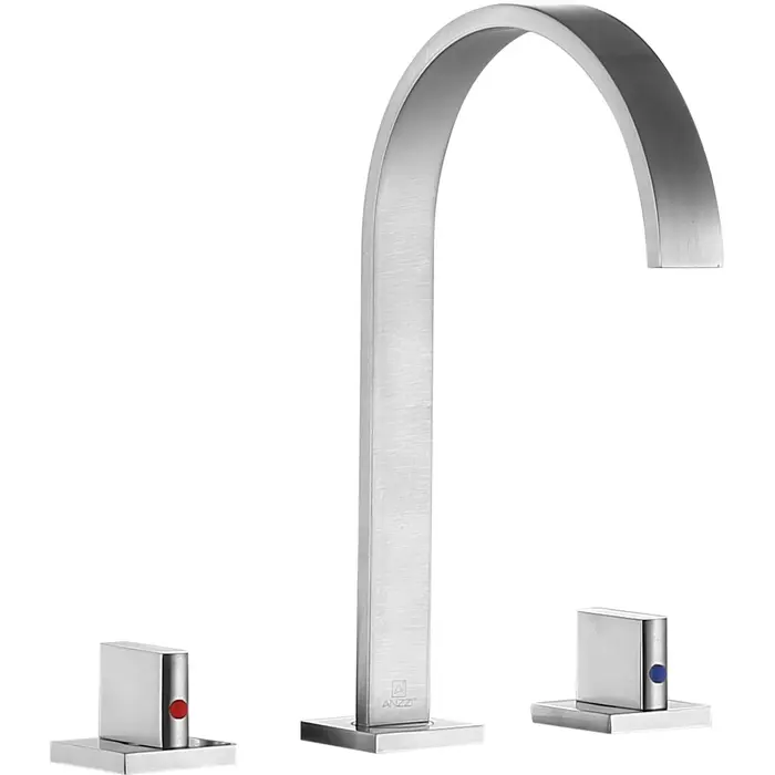 ANZZI is committed to introducing the latest in European bath fixture design to the North American home. ANZZI presents the Sabre Series dual handle bathroom sink faucet. Crafted using RHINO ALLOY certified brass interior, marine grade ceramic disk and brushed nickel lead-free rust resistant finish. The elegance and style of our ANZZI faucets is matched by their proven performance and reliability, which is why our faucets are backed by the ANZZI Limited Lifetime Warranty. Become a member of the ANZZI family and experience why Perfection is our Tradition.Stunning brushed nickel finishRHINO ALLOY certified lead-free solid brass with rust resistant finishDual (2) handle operationThree (3) hole 8 in. widespread installationMarine grade ceramic disk includedSpout reach: 6.69 in.; spout height: 7.28 in.Flow rate: 1.2 gpmConnection size: 3/8 in.cUPC, NSF, AB1953, WaterSense and CEC certifiedLimited lifetime warrantyShips from factory within 24 hours of orderTo speak to a knowledgeable and dedicated ANZZI specialist simply call 1-844-44-ANZZI or visit us on the web at www.ANZZI.com