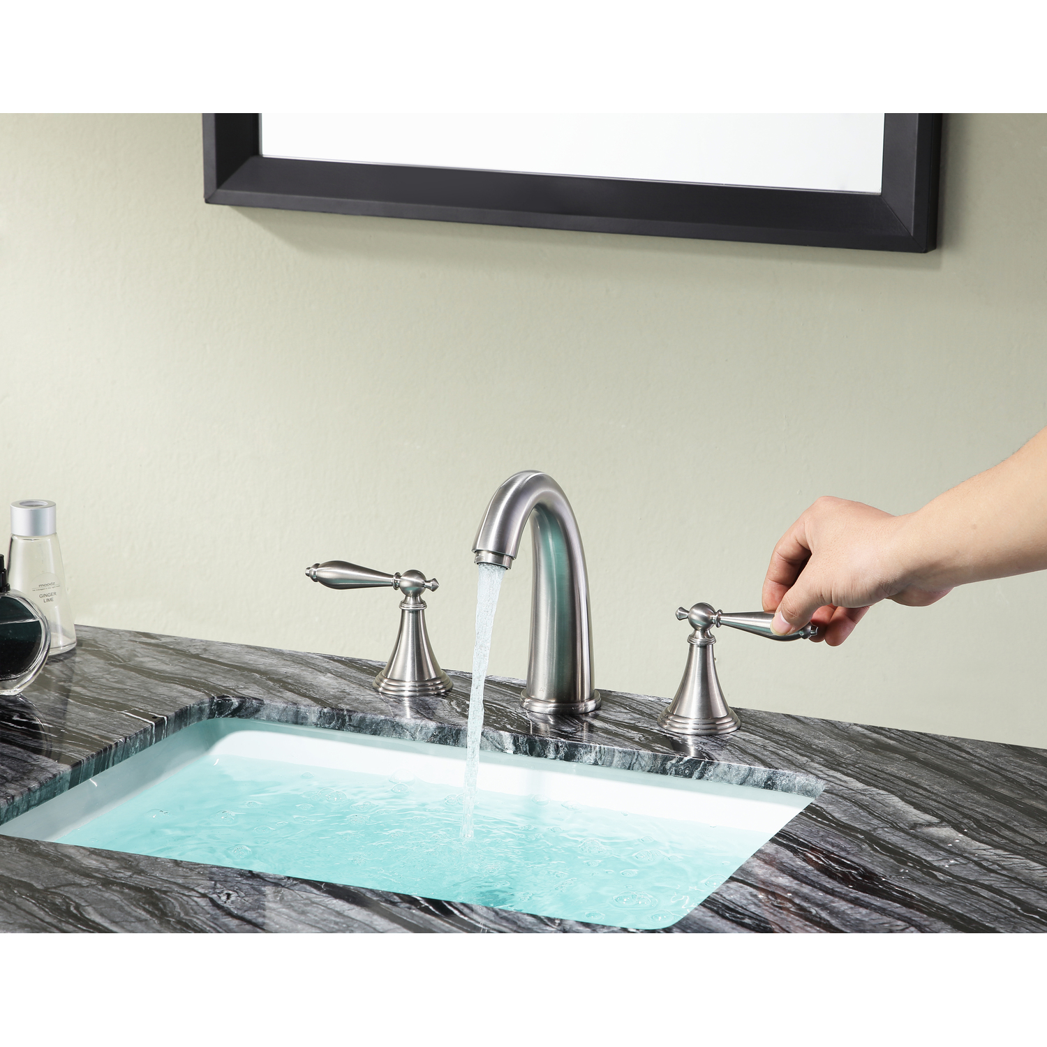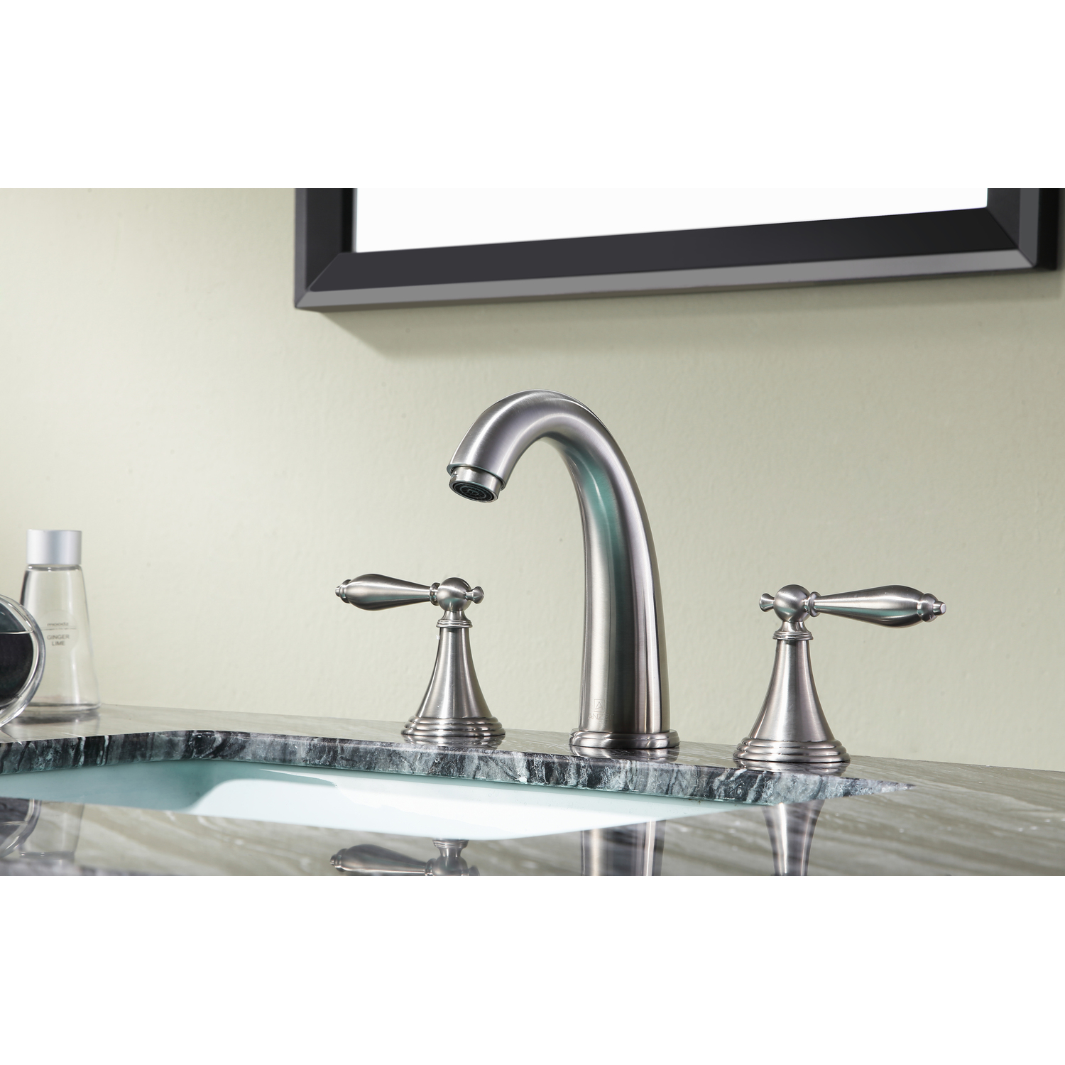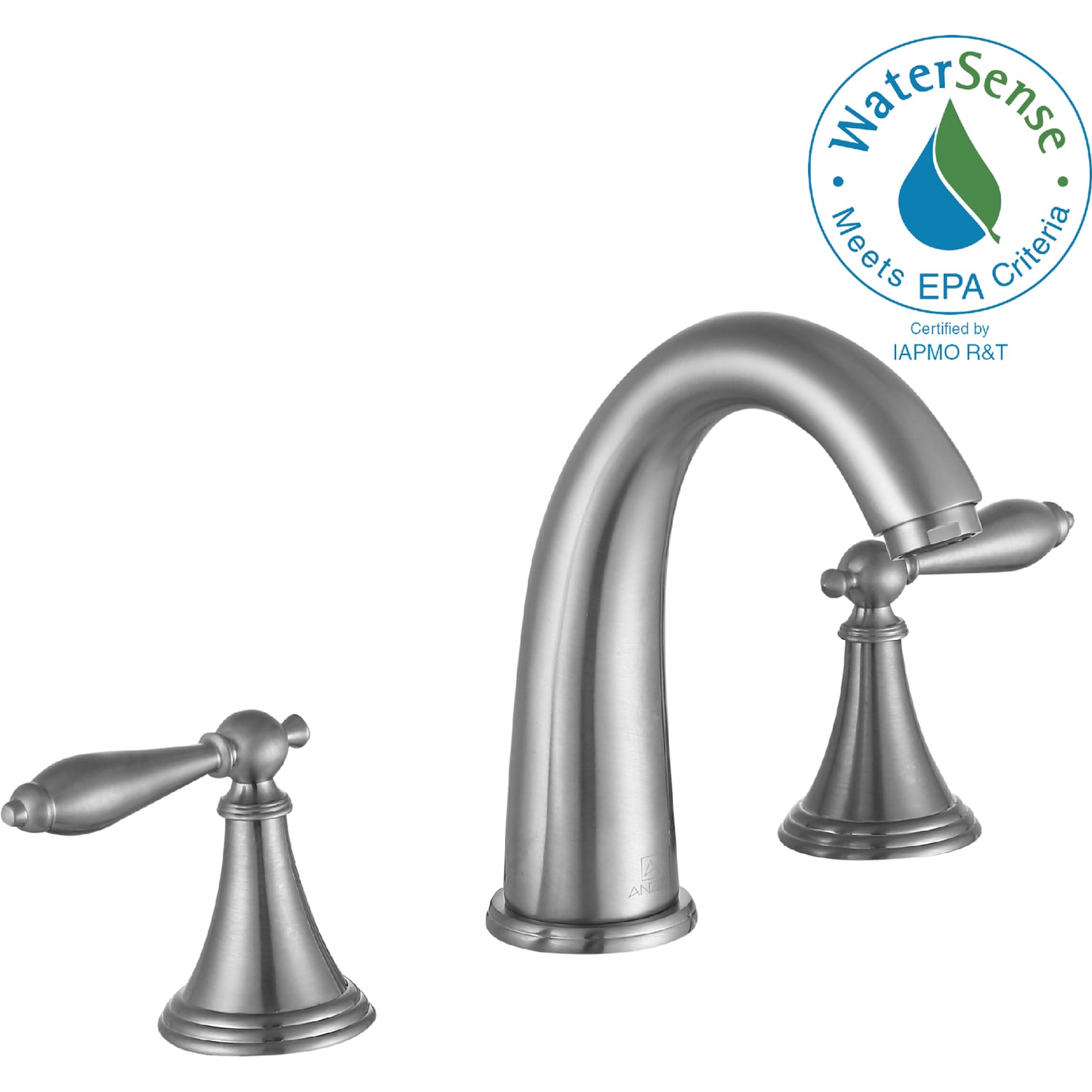 ANZZI is committed to introducing the latest in European bath fixture design to the North American home. ANZZI presents the Queen dual handle bathroom sink faucet. Crafted using RHINO ALLOY certified brass interior, marine grade ceramic disk and brushed nickel lead-free rust resistant finish. The elegance and style of our ANZZI faucets is matched by their proven performance and reliability, which is why our faucets are backed by the ANZZI Limited Lifetime Warranty. Become a member of the ANZZI family and experience why Perfection is our Tradition.Stunning brushed nickel finishRHINO ALLOY certified lead-free solid brass with rust resistant finishDual (2) handle operationThree (3) hole 8 in. widespread installationMarine grade ceramic disk includedSpout reach: 4.53 in.; spout height: 4.72 in.Flow rate: 1.2 gpmConnection size: 3/8 in.cUPC, NSF, AB1953, WaterSense and CEC certifiedLimited lifetime warrantyShips from factory within 24 hours of orderTo speak to a knowledgeable and dedicated ANZZI specialist simply call 1-844-44-ANZZI or visit us on the web at www.ANZZI.com