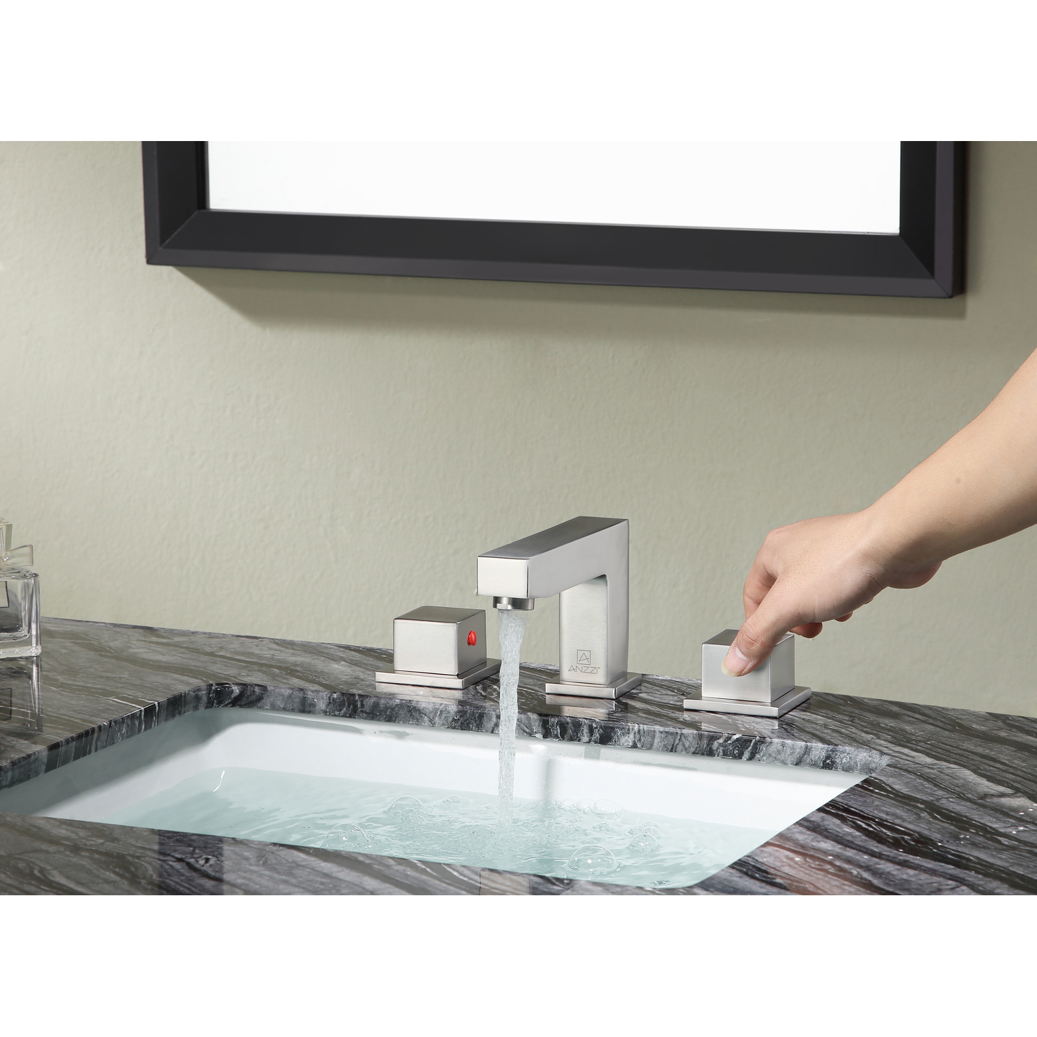 ANZZI is committed to introducing the latest in European bath fixture design to the North American home. ANZZI presents the Bonette dual handle bathroom sink faucet. Crafted using RHINO ALLOY certified brass interior, marine grade ceramic disk and brushed nickel lead-free rust resistant finish. The elegance and style of our ANZZI faucets is matched by their proven performance and reliability, which is why our faucets are backed by the ANZZI Limited Lifetime Warranty. Become a member of the ANZZI family and experience why Perfection is our Tradition.Stunning brushed nickel finishRHINO ALLOY certified lead-free solid brass with rust resistant finishDual (2) handle operationThree (3) hole 8 in. widespread installationMarine grade ceramic disk includedSpout reach: 4.53 in.; spout height: 2.56 in.Flow rate: 1.2 gpmConnection size: 3/8 in.cUPC, NSF, AB1953, WaterSense and CEC certifiedLimited lifetime warrantyShips from factory within 24 hours of orderTo speak to a knowledgeable and dedicated ANZZI specialist simply call 1-844-44-ANZZI or visit us on the web at www.ANZZI.com