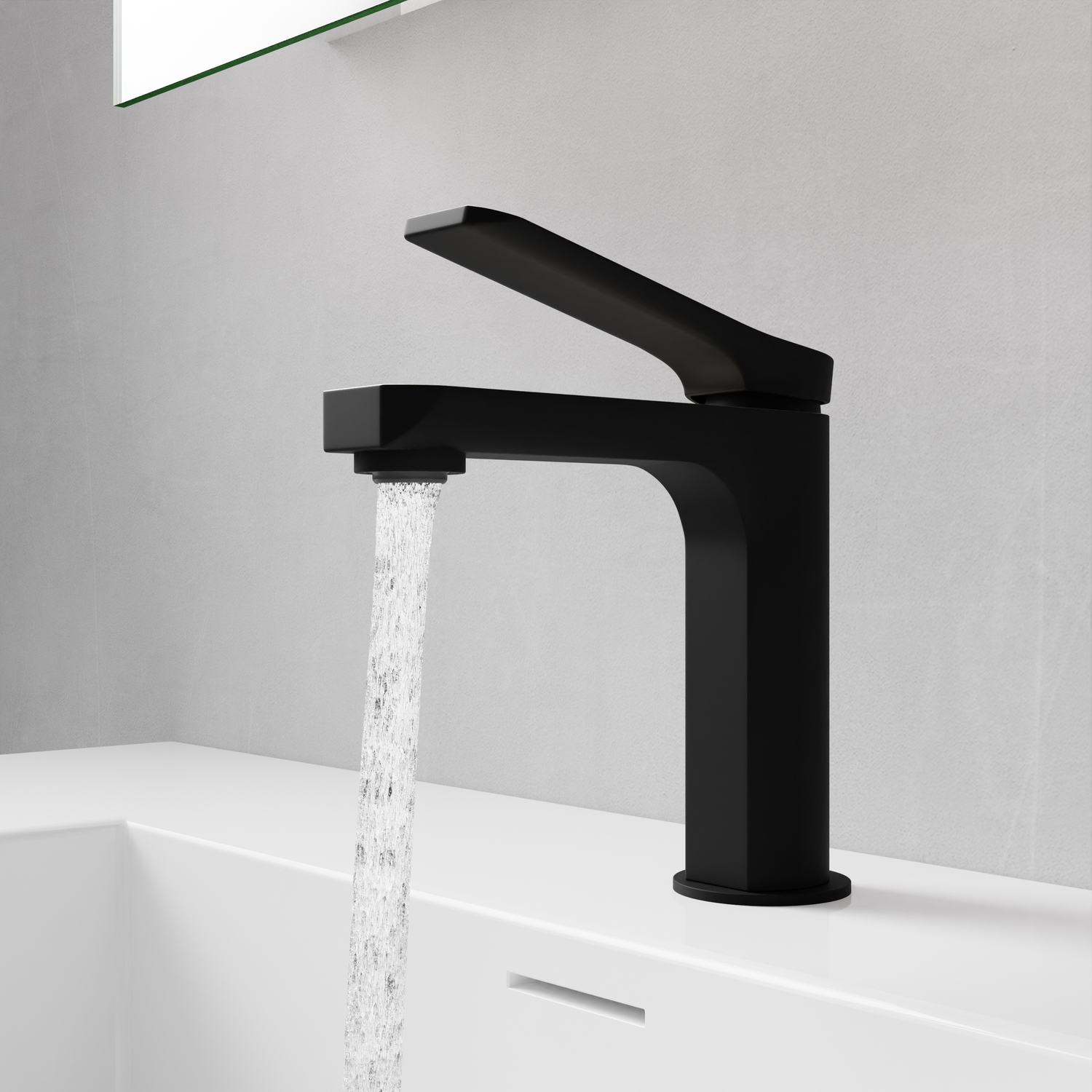 Crisp lines and defined edges create an artful style that gives an ultra-modern twist to any bathroom, whether classic or contemporary. Simple single hole installation looks clean and uncluttered when matched to your sink. The sleek handle gives you easy, instant control of the water volume and temperature. The 1.2 gpm rate minimizes your water usage while still delivering a strong flow. Durable brass construction is finished in a striking two-tone Matte Black with Brushed Nickel.