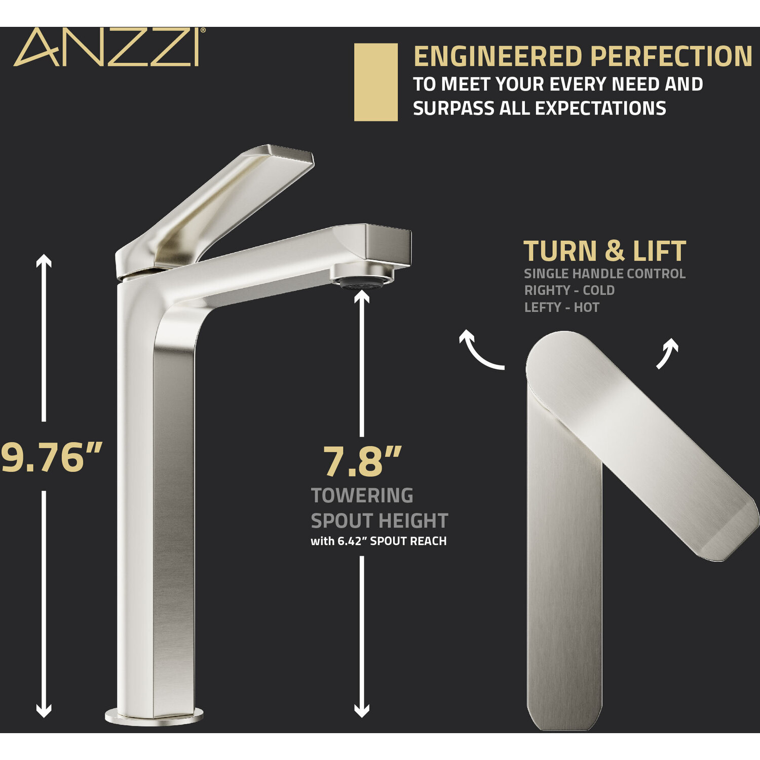 ANZZI Single Handle Single Hole Bathroom Vessel Sink Faucet With Pop-up Drain in Brushed Nickel, 191042074255, L-AZ901BN