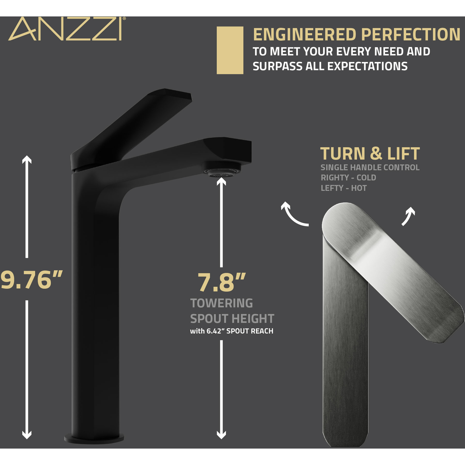 - SINGLE HOLE MOUNT — creates an uncluttered minimalist look when matched to your sink