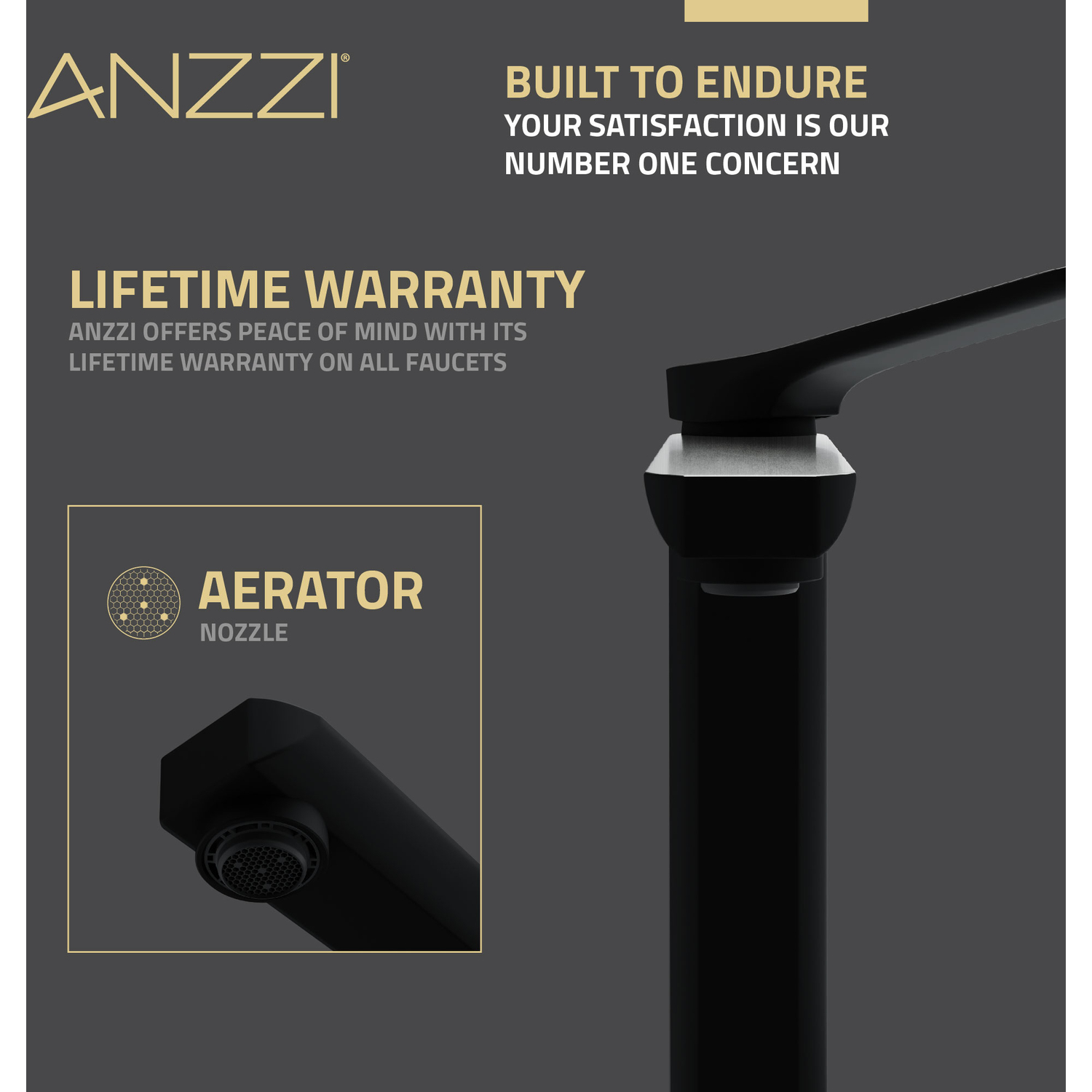 - 1.2 GPM WATER-SAVING AERATOR — uses less water while still delivering a strong flow