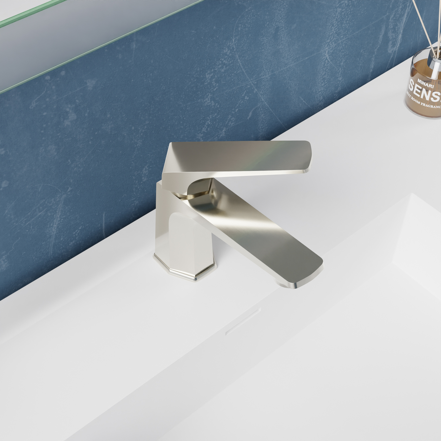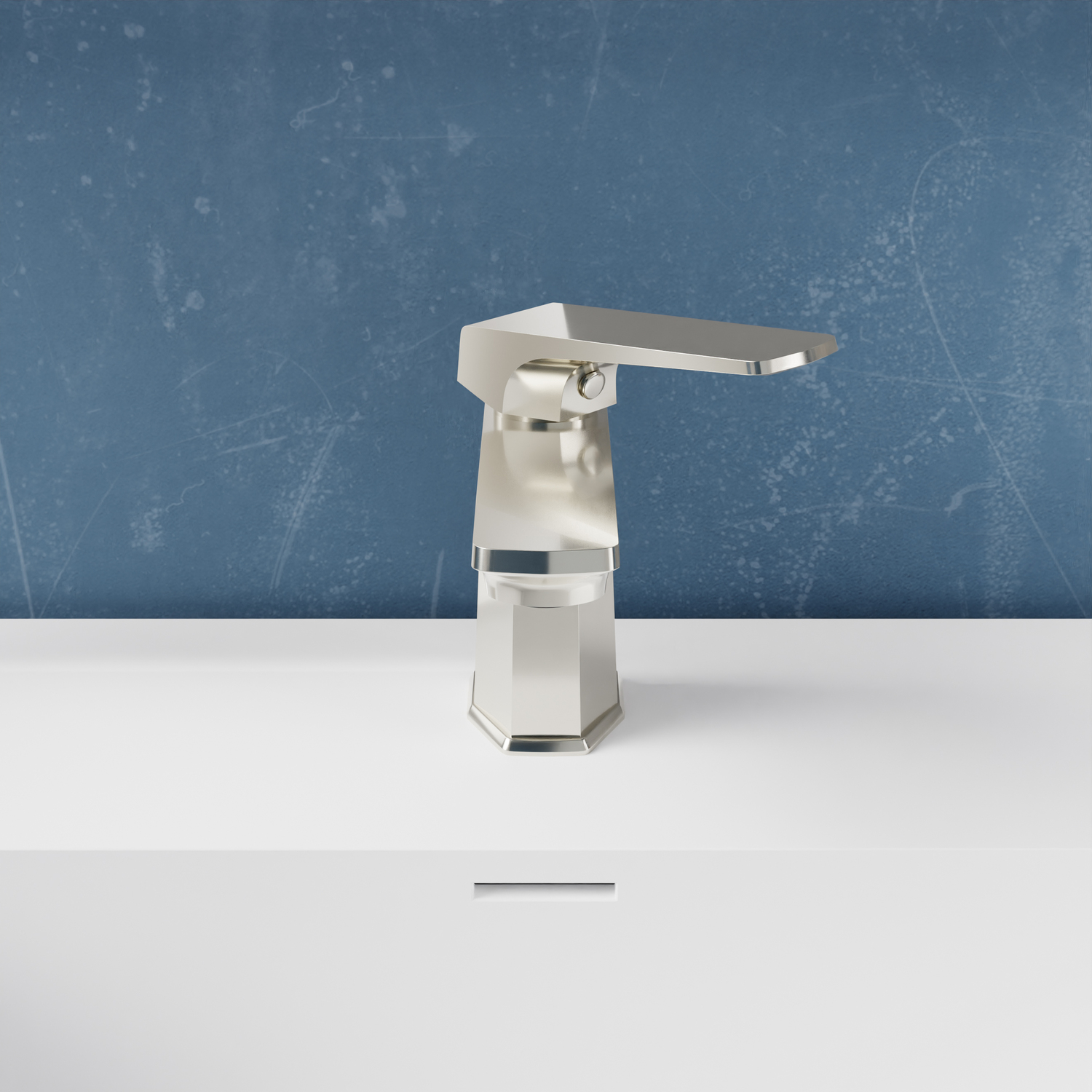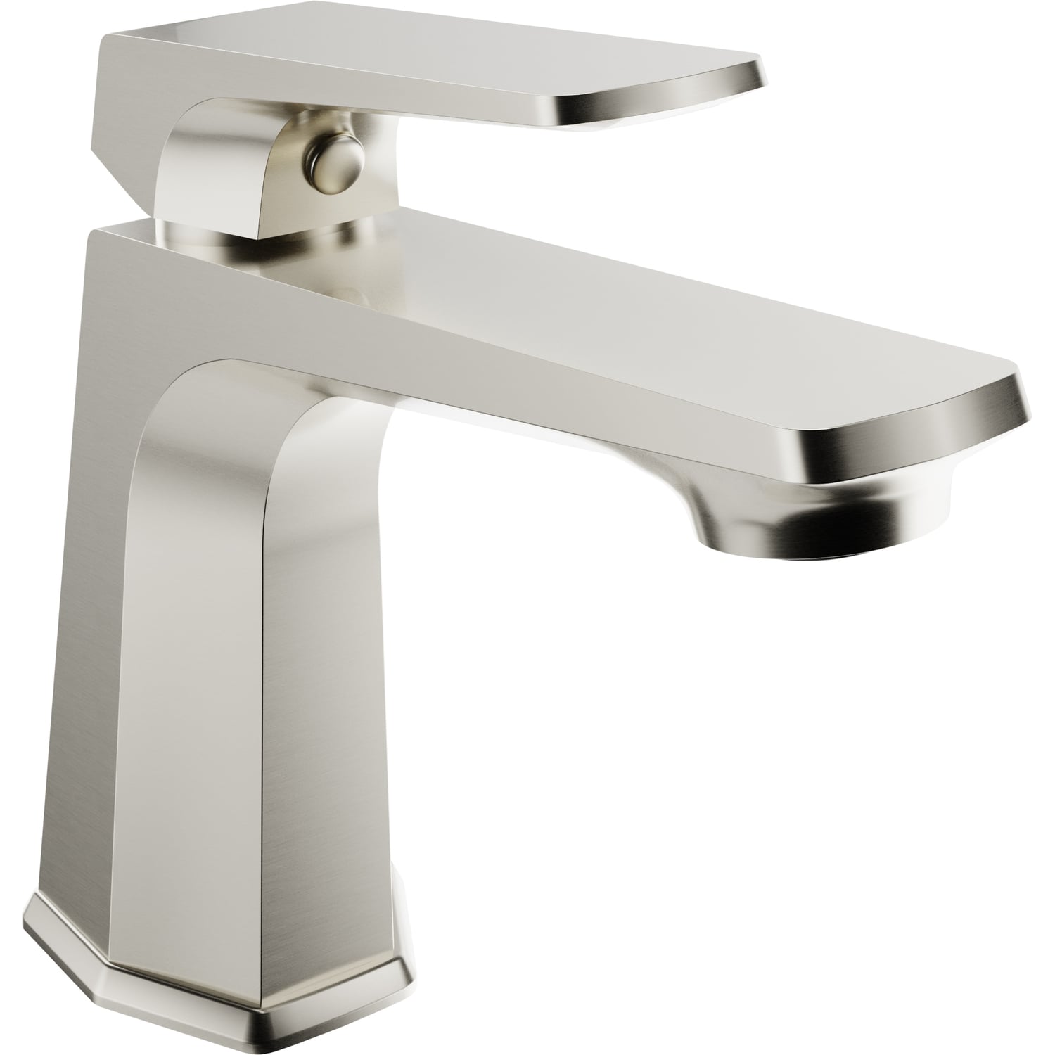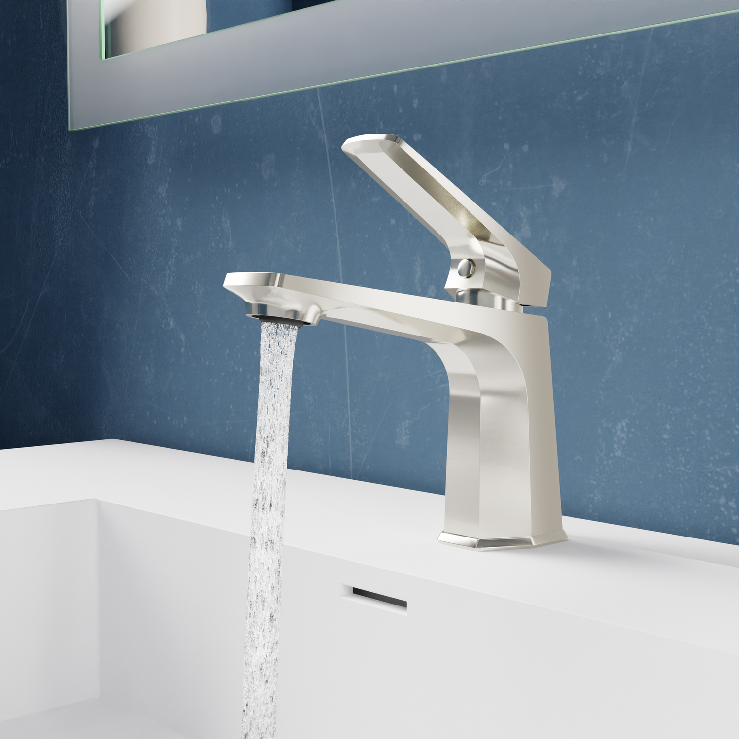 This edgy, angular faucet is designed to be a masterwork of minimalism. The sleek lines and ultramodern vibe infuse your bathroom with a style that’s simple yet chic. Single hole installation looks clean and uncluttered when matched to your sink. The streamlined handle gives you easy, instant control of the water volume and temperature. The 1.2 gpm rate minimizes your water usage while still delivering a strong flow. Durable brass construction is finished in a brilliant Brushed Nickel.