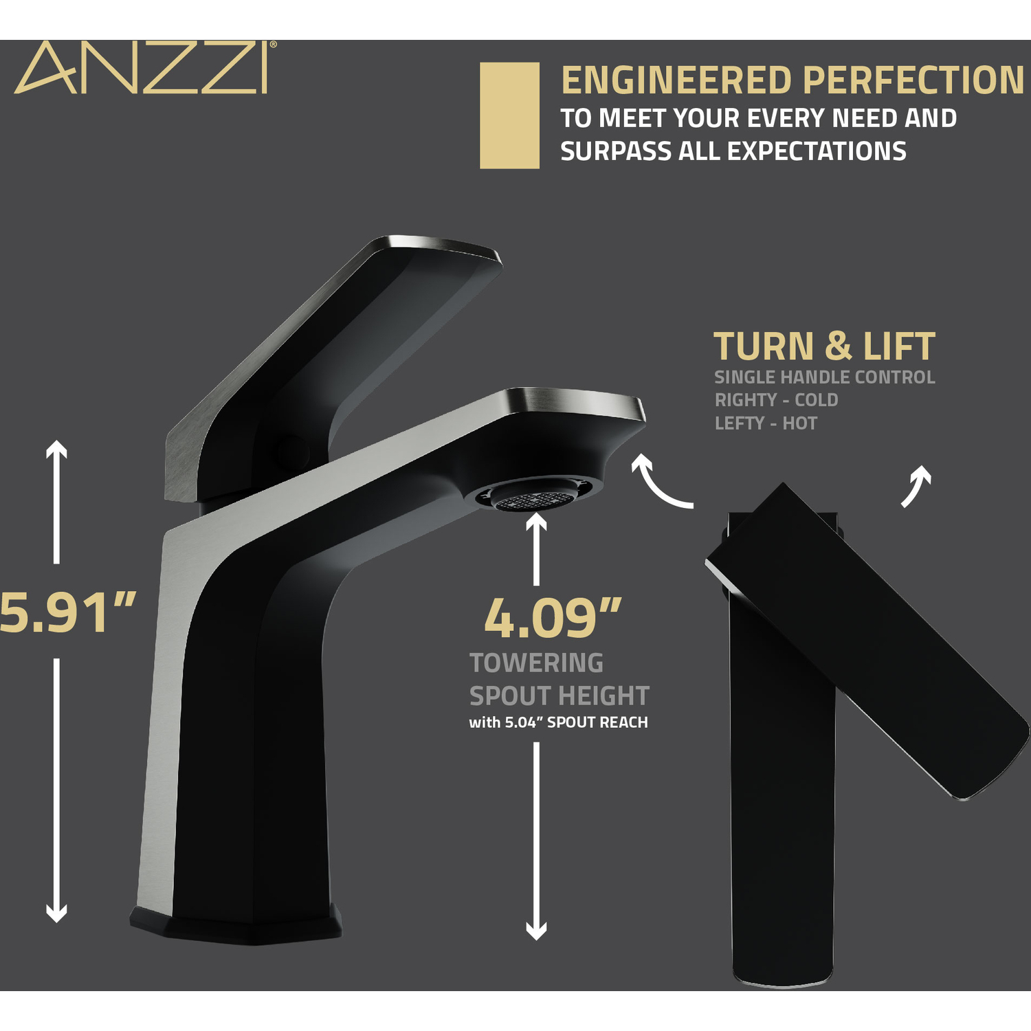ANZZI Single Handle Single Hole Bathroom Faucet With Pop-up Drain in Matte Black & Brushed Nickel, 191042074330, L-AZ903MB-BN