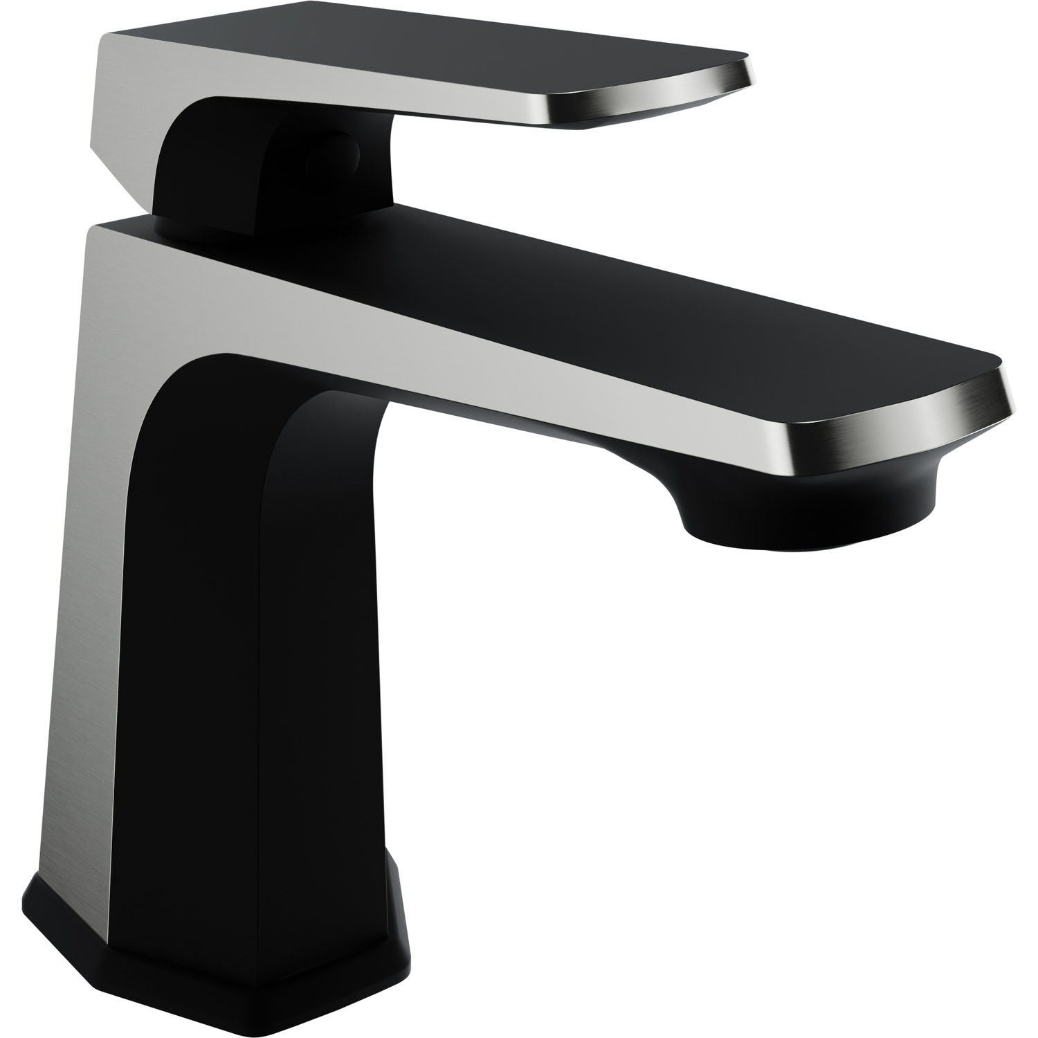This edgy, angular faucet is designed to be a masterwork of minimalism. The sleek lines and ultramodern vibe infuse your bathroom with a style that’s simple yet chic. Single hole installation looks clean and uncluttered when matched to your sink. The streamlined handle gives you easy, instant control of the water volume and temperature. The 1.2 gpm rate minimizes your water usage while still delivering a strong flow. Durable brass construction is finished in Matte Black with Brushed Nickel.