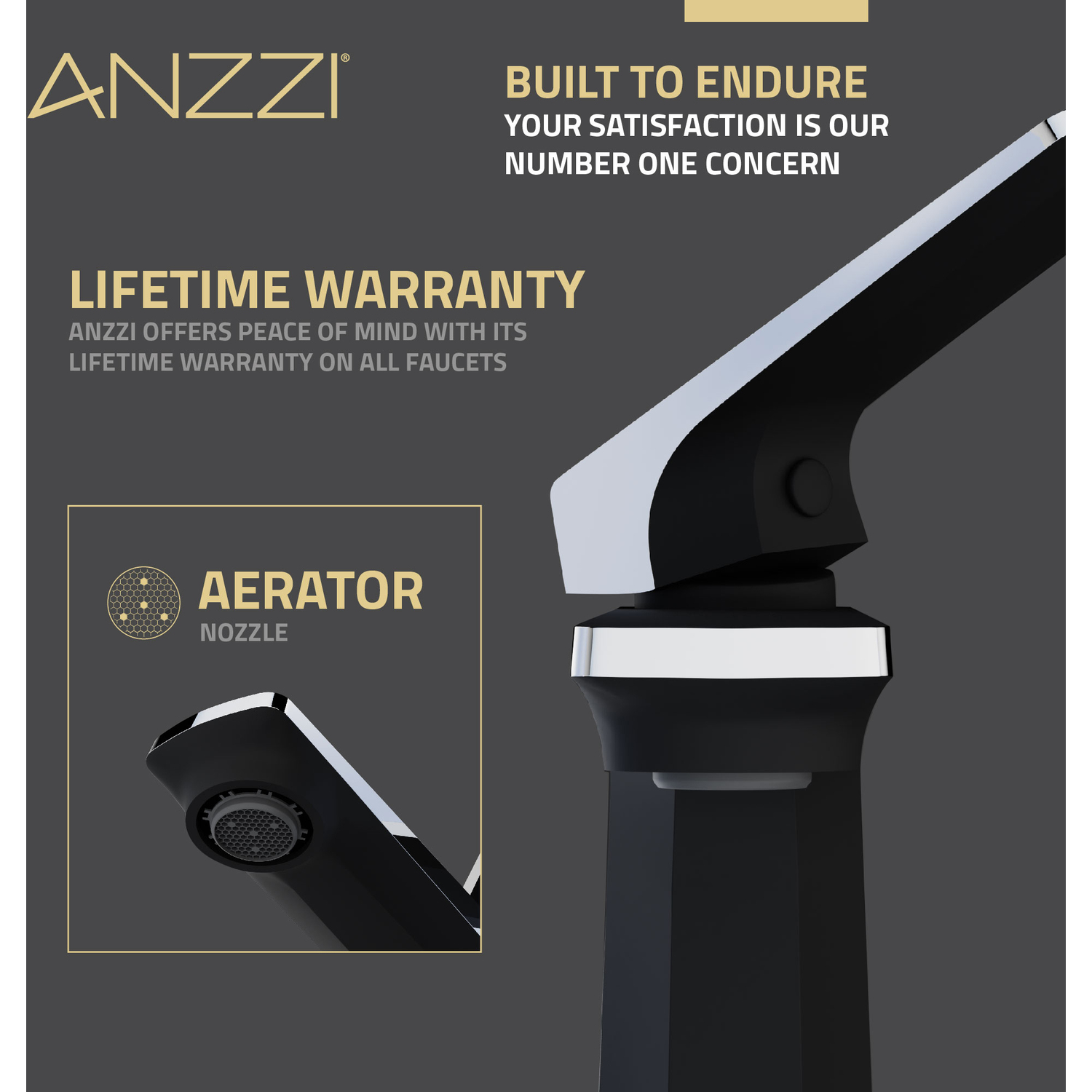 - 1.2 GPM WATER-SAVING AERATOR — uses less water while still delivering a strong flow