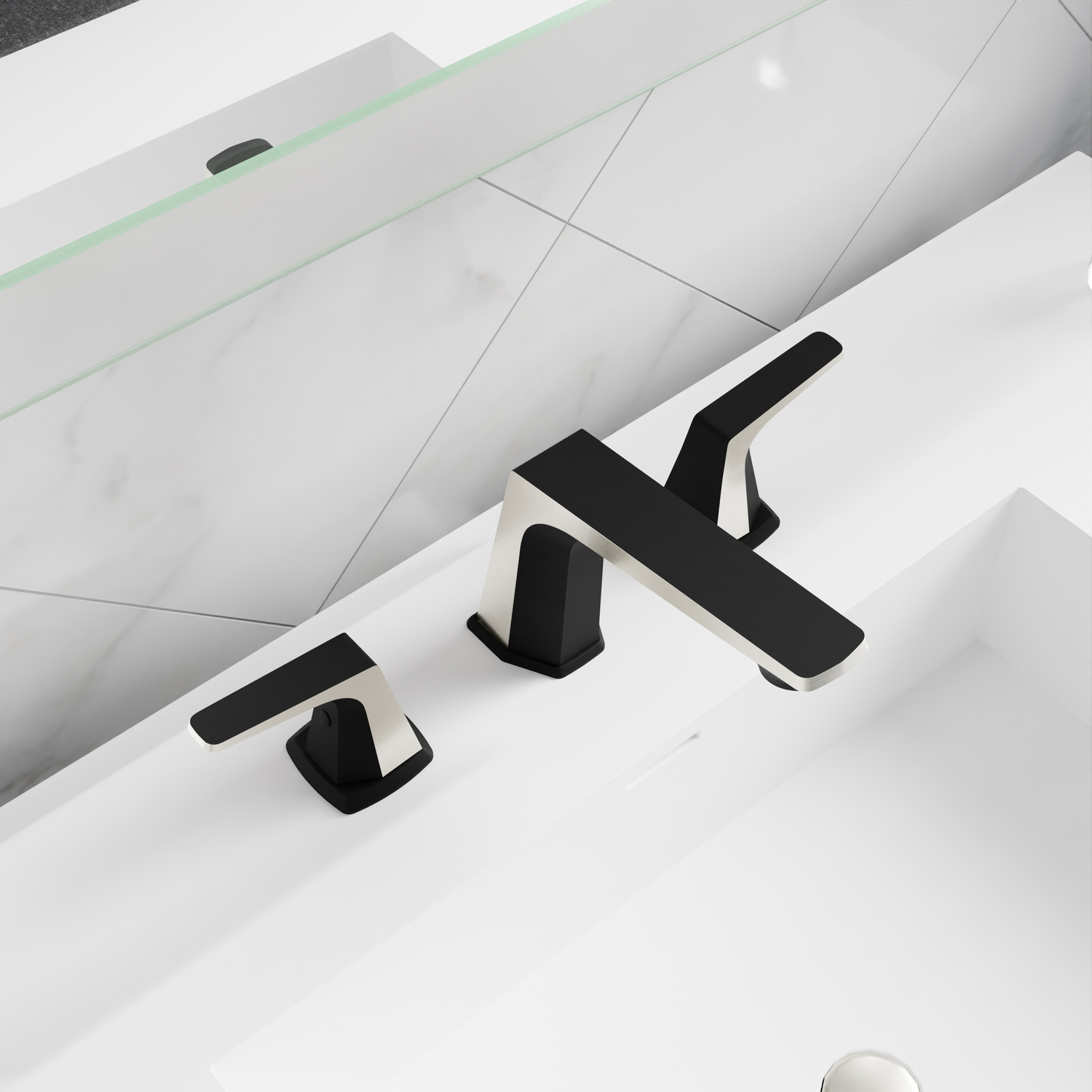 INCLUDES MATTE BLACK POP-UP DRAIN — faucet is ready to install out of the boxSEPARATE HOT & COLD LEVERS — adjust water flow to the precise strength and temperature you prefer1.2 GPM WATER-SAVING AERATOR — uses less water while still delivering a strong flowSIMPLE TWO LEVER DESIGN — easily control water flow8 IN. WIDEPREAD MOUNT — installs easily to any 3-hole, 8-in. spacing sinkSTRIKING MATTE BLACK/BRUSHED NICKEL FINISH — the eye-catching finish stands out and keeps looking its best year after yearDURABLE BRASS CONSTRUCTION — don’t let the elegant looks fool you, this faucet is built to lastCHIC & CONTEMPORARY STYLING — clean and crisp lines create a sleek look that adds ultra-modern allure to any bathroomRHINO-ALLOY CERTIFIED — we make sure our faucets meet the highest standards for quality and durabilityFITS MOST COMMON WATER LINES — 1/2 in. connection makes installation easy and convenientDIMENSIONS — faucet: 5.28 in. H, spout: 5.28 in. H x 7.31 in. L x 5.51 in. ReachLIMITED LIFETIME WARRANTY — when you buy it, we back it, so you can be confident in the quality of our productsGET IT FAST — ships from warehouse within 24 hours of order processingProfessional installation highly recommended