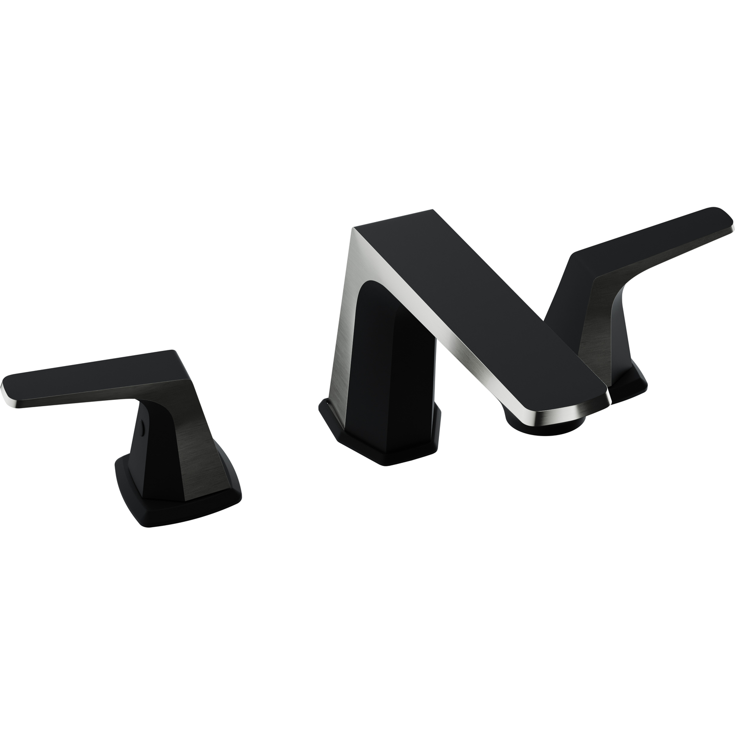Sculpted from sleek lines and edgy angles, this faucet adds the contemporary touch your bathroom needs. The modern, minimalist styling looks clean and uncluttered when matched to any sink. Streamlined handles for hot and cold give precise control of water volume and temperature so you can adjust to your exact preference. The 1.2 gpm rate minimizes water usage while still delivering a strong flow. Durable brass construction is finished in Matte Black with Brushed Nickel.