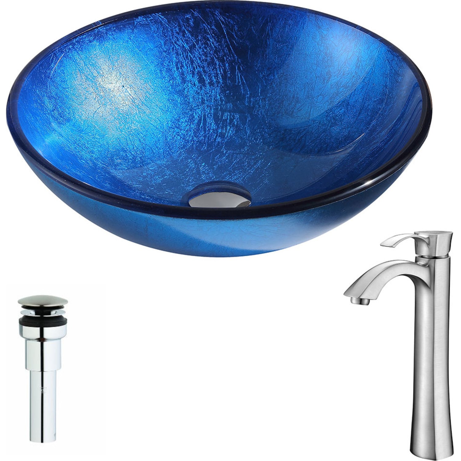 The ANZZI Clavier Series sink is a traditionally crafted round vessel sink adorned in a Lustrous Blue Finish. Coupled with the ANZZI Harmony Vessel Sink Faucet, this combination provides pure elegance in any bathroom. Each ANZZI vessel sink and faucet is formed using RHINO ALLOY certified materials for strength and quality along with high tempered Deco-Glass. The result is a perfectly shaped dynamically captivating vessel and faucet centerpiece for any bathroom counter.Lustrous blue finishANZZI Harmony vessel sink faucet L-AZ095BNRHINO ALLOY certified tempered deco-glass constructionScratch-tough and stain-resistant non-porous surfaceEasy-to-clean low maintenanceTop Mount installationDeco-Glass thickness 1.75 in.Dimensions: 16.5 in. L x 16.5 in. W x 5.5 in. HLimited Lifetime WarrantyTo speak to a knowledgeable and dedicated ANZZI specialist simply call 1-844-44-ANZZI or visit us on the web at www.ANZZI.com