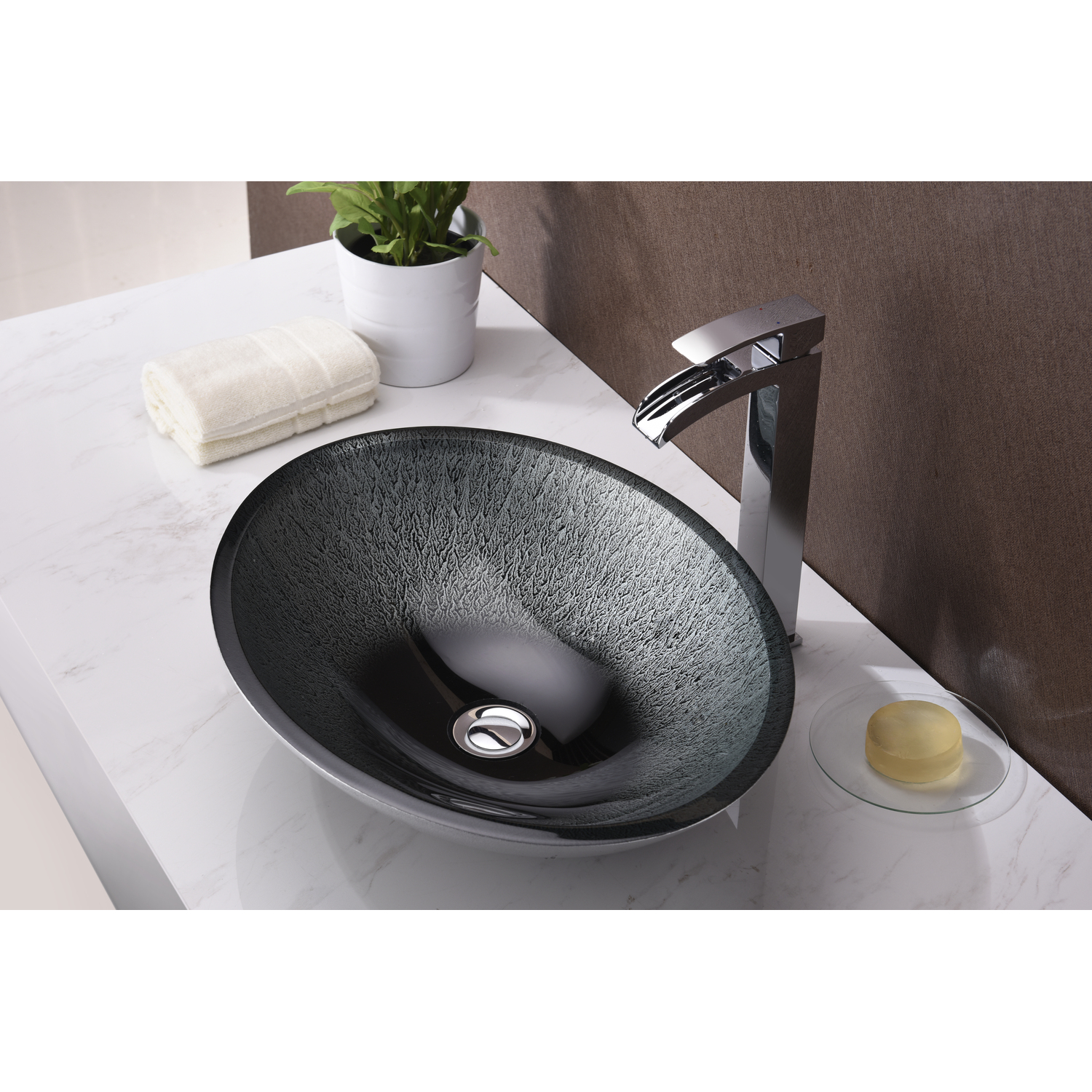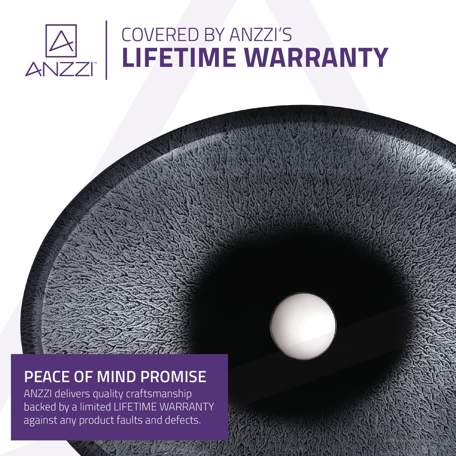 The ANZZI Onyx Series sink is a traditionally crafted oval vessel sink adorned in a Black finish. Each ANZZI vessel sink is formed using RHINO ALLOY certified high tempered Deco-Glass material. The result is an elegantly shaped and captivating vessel centerpiece for any bathroom counter.RHINO ALLOY certified tempered deco-glass construction in a stunning Black finishScratch-tough and stain-resistant non-porous surfaceEasy-to-clean low maintenanceTop mount installationDimensions: 19.5 in. L x 15.4 in. W x 5.7 in. HDeco-glass thickness: 1/2 in.Single 1.75 in. standard drain openingANZZI Polished Chrome pop-up drain includedShips from factory within 24 hours once order is processedTo speak to a knowledgeable and dedicated ANZZI specialist simply call 1-844-44-ANZZI or visit us on the web at www.ANZZI.com