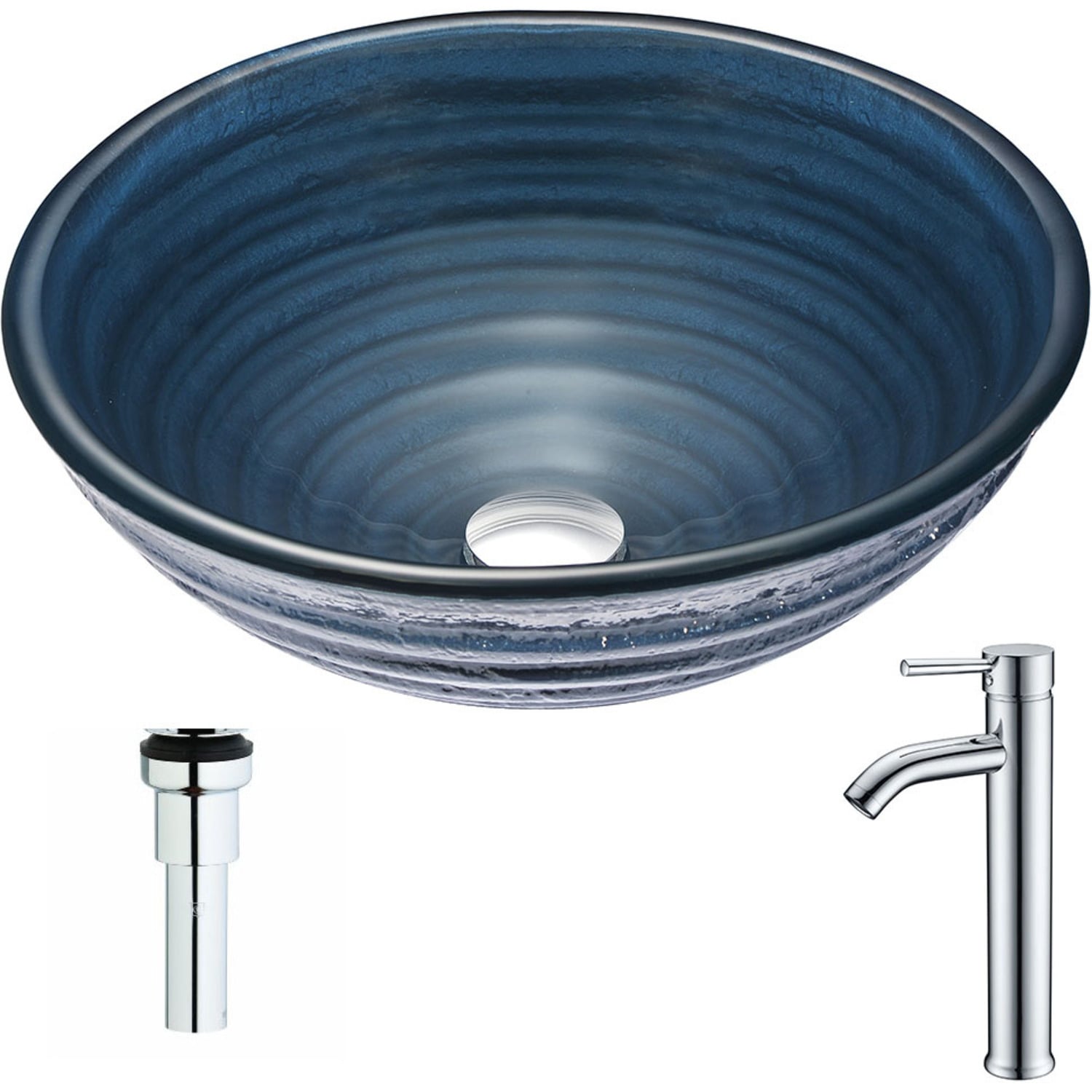 Anzzi Tempo Series Deco-Glass Vessel Sink in Coiled Blue with Fann Faucet in Polished Chrome, 848308086445, LSAZ042-041
