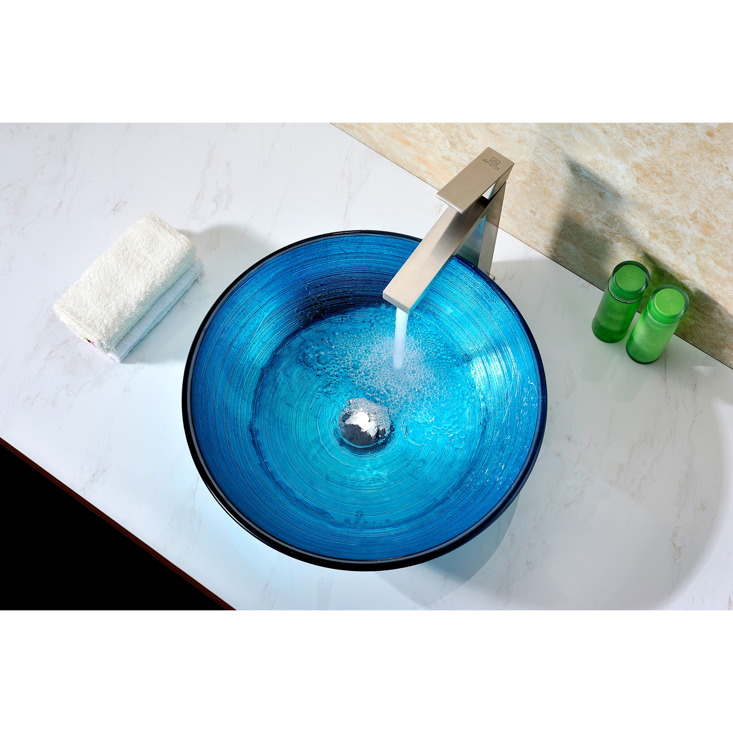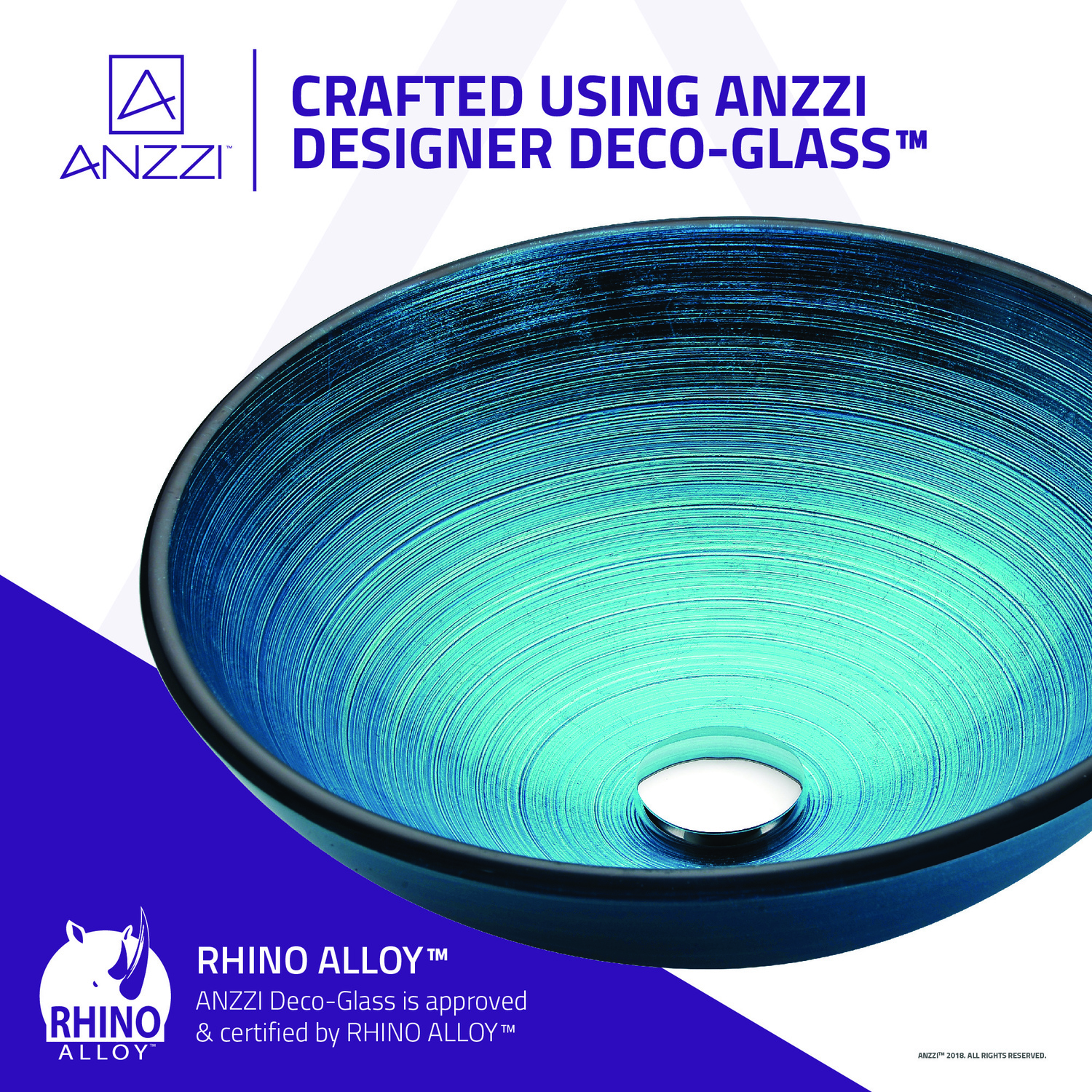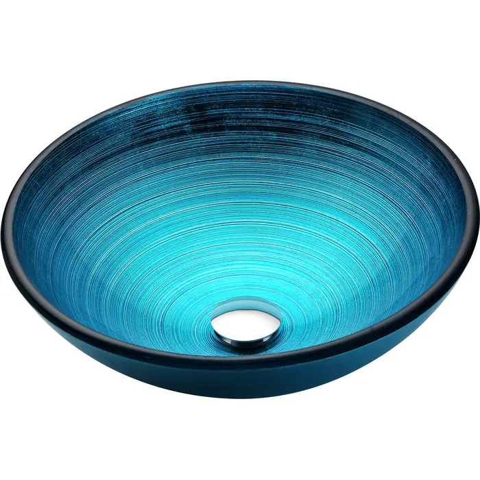 The ANZZI Enti Series sink is a traditionally crafted round vessel sink adorned in a Lustrous Blue Finish. Each ANZZI vessel sink is formed using RHINO ALLOY certified high tempered Deco-Glass material. The result is a dynamically shaped and captivating vessel centerpiece for any bathroom counter.Lustrous Blue FinishRHINO ALLOY certified Tempered Deco-Glass constructionScratch-tough and stain-resistant non-porous surfaceEasy-to-clean low maintenanceTop Mount installationDimensions: 16.5 in. L x 16.5 in. W x 5.75 in. HDeco-Glass thickness 1.75 in.Single 3/4 in. standard drain openingLimited Lifetime WarrantyTo speak to a knowledgeable and dedicated ANZZI specialist simply call 1-844-44-ANZZI or visit us on the web at www.ANZZI.comAdditionally, use the following codes to search for exquisite vessel faucet options from ANZZI: L-AZ022 , L-AZ095 , L-AZ095BN , L-AZ096 , L-AZ096BN , L-AZ097 , L-AZ097BN , L-AZ040 , L-AZ041