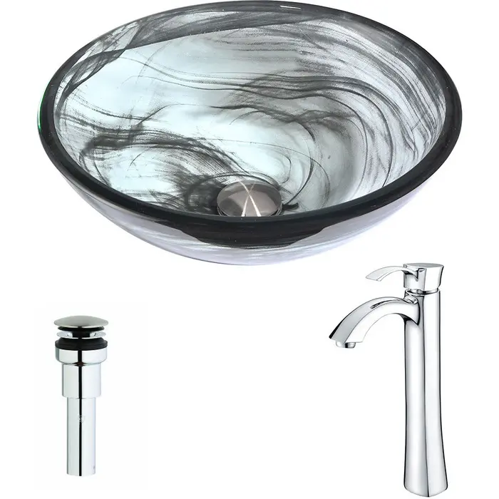 Anzzi Mezzo Series Deco-Glass Vessel Sink in Slumber Wisp with Harmony Faucet in Polished Chrome, 848308083727, LSAZ054-095
