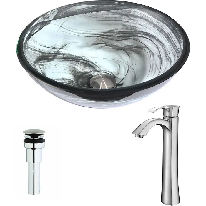 Anzzi Mezzo Series Deco-Glass Vessel Sink in Slumber Wisp with Harmony Faucet in Brushed Nickel, 848308085622, LSAZ054-095B