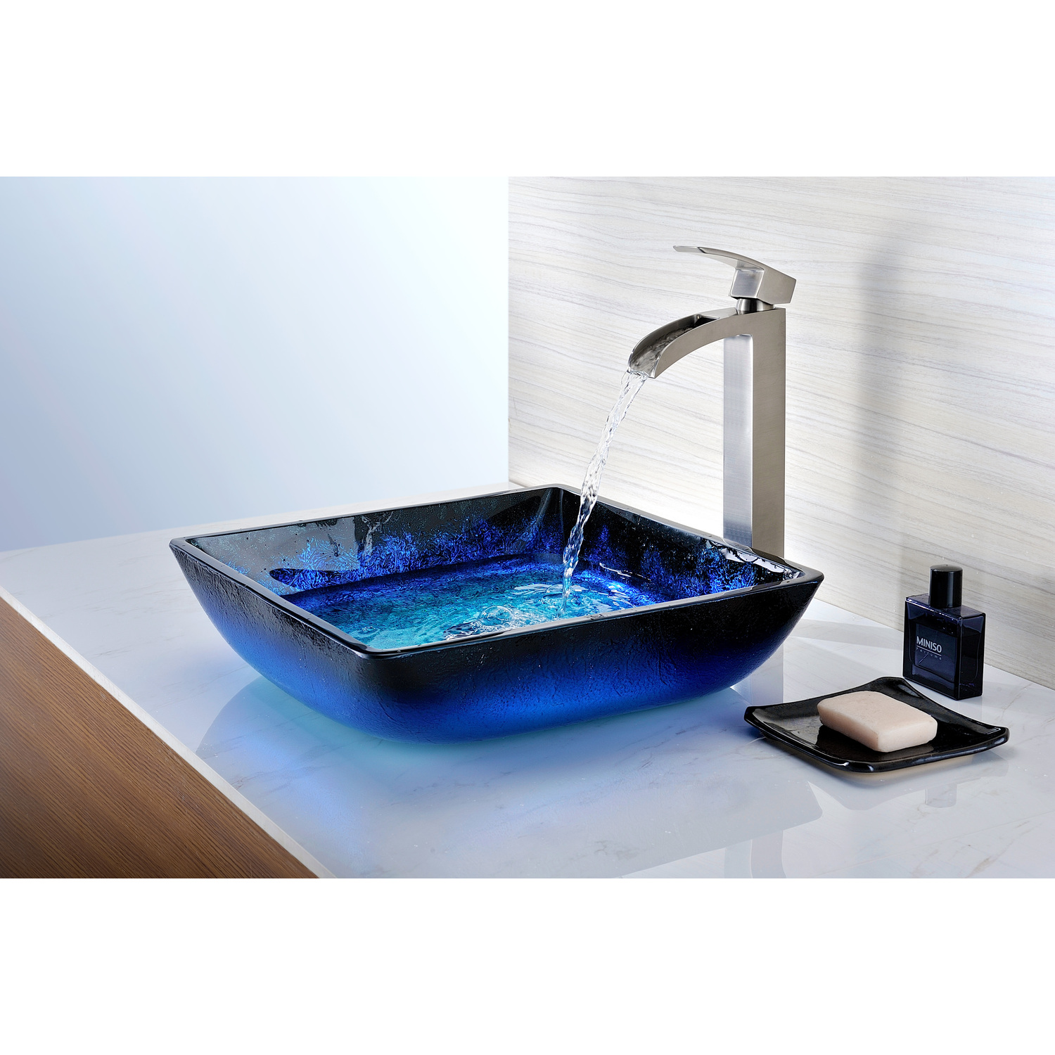 The ANZZI Viace Series sink is a traditionally crafted squared vessel sink adorned in a Blazing Blue Finish. Each ANZZI vessel sink is formed using RHINO ALLOY certified high tempered Deco-Glass material. The result is a dynamically shaped and captivating vessel centerpiece for any bathroom counter.Blazing Blue FinishRHINO ALLOY certified Tempered Deco-Glass constructionScratch-tough and stain-resistant non-porous surfaceEasy-to-clean low maintenanceTop Mount installationDimensions: 15.125 in. L x 15.125 in. W x 4 in. HDeco-Glass thickness 1.75 in.Single 3/4 in. standard drain openingLimited Lifetime WarrantyTo speak to a knowledgeable and dedicated ANZZI specialist simply call 1-844-44-ANZZI or visit us on the web at www.ANZZI.comAdditionally, use the following codes to search for exquisite vessel faucet options from ANZZI: L-AZ022 , L-AZ095 , L-AZ095BN , L-AZ096 , L-AZ096BN , L-AZ097 , L-AZ097BN , L-AZ040 , L-AZ041