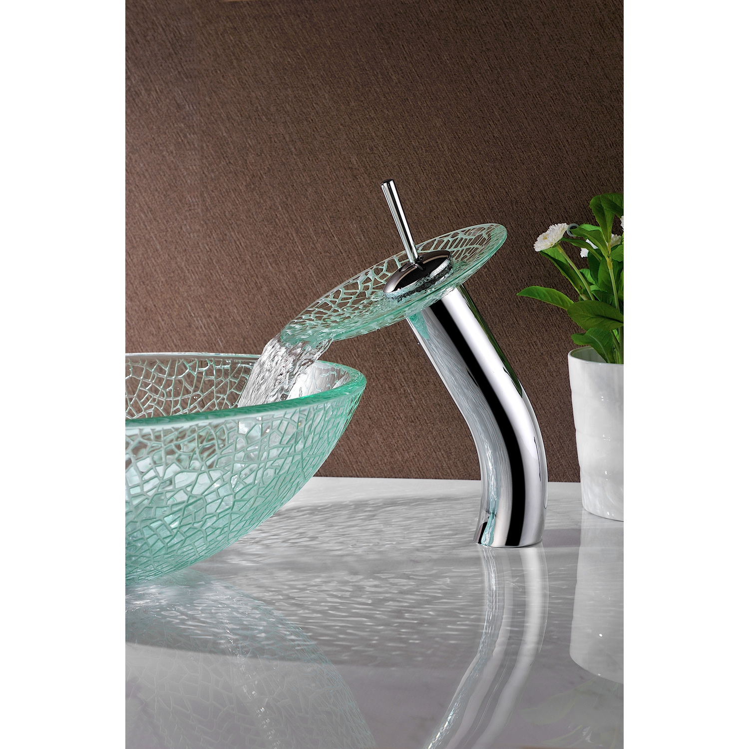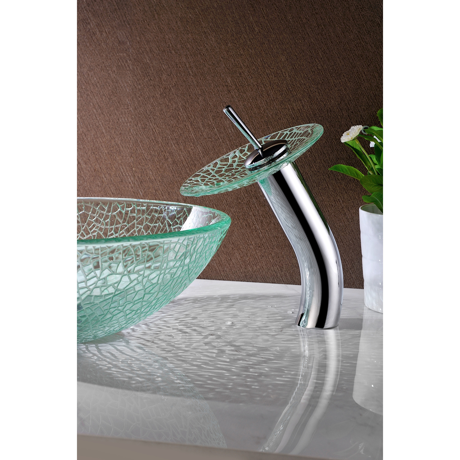 - Single handle matching Deco-Glass waterfall vessel faucet in chrome finish included