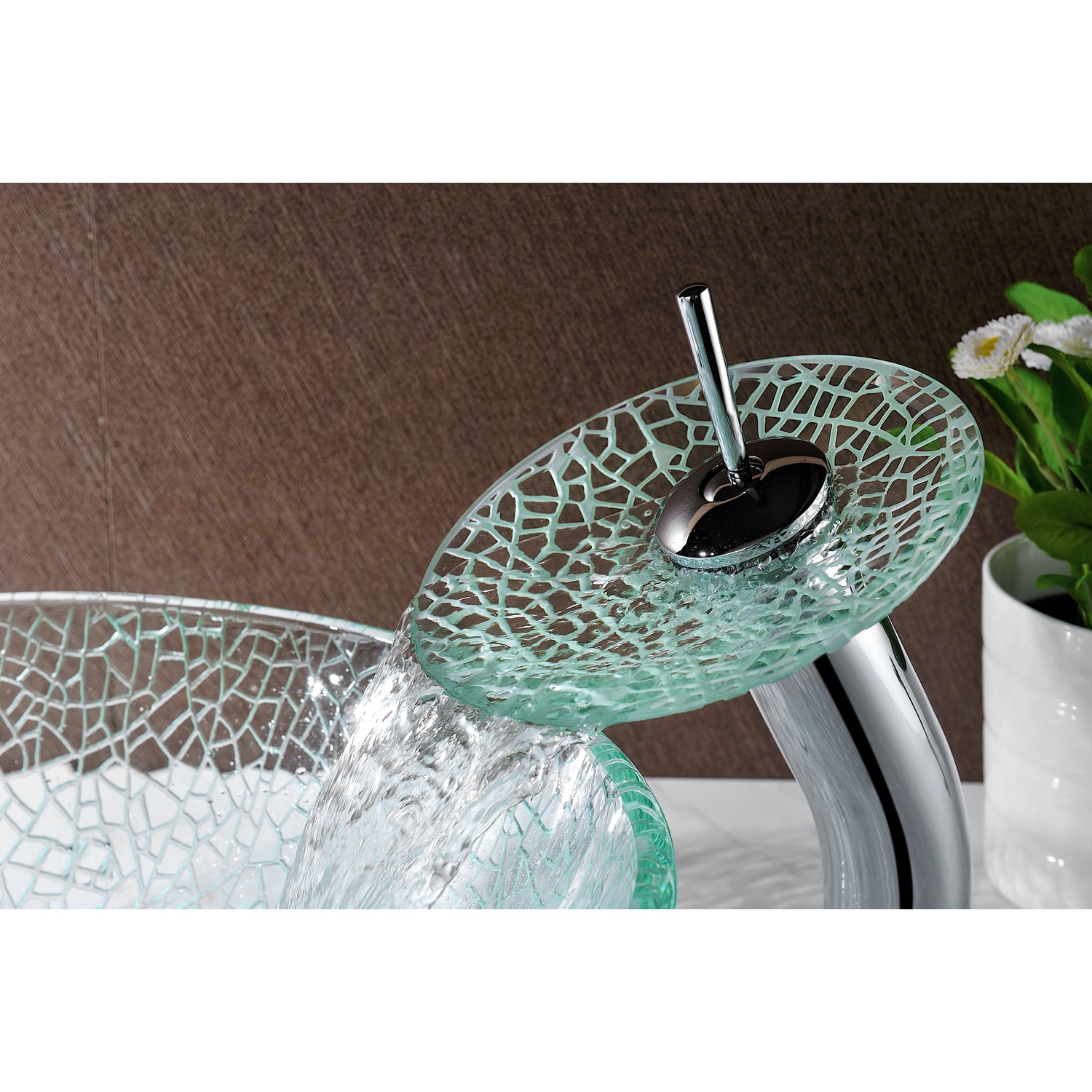 Anzzi Choir Series Deco-Glass Vessel Sink in Crystal Clear Mosaic with Matching Chrome Waterfall Faucet, 848308071922, LS-AZ063