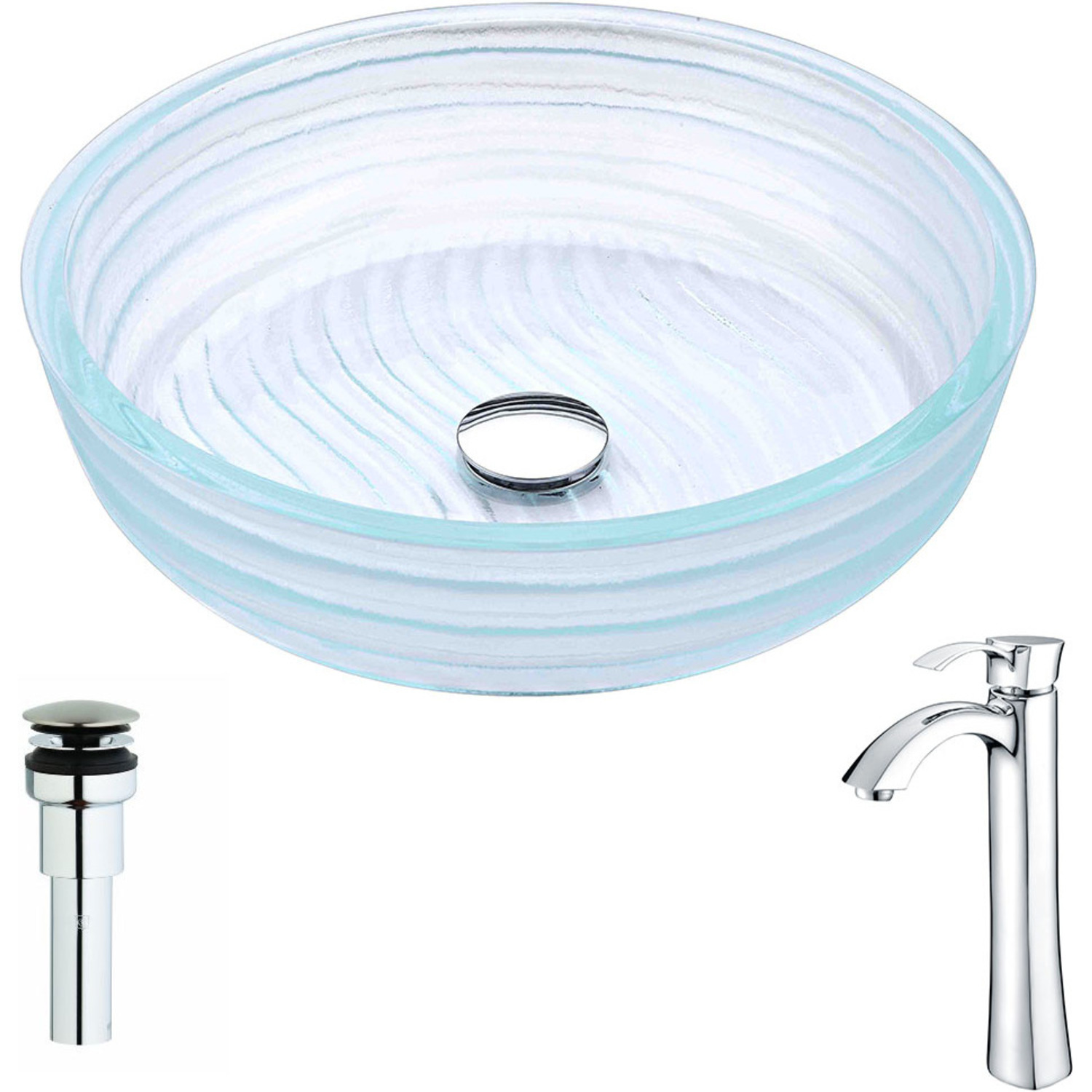 Anzzi Canta Series Deco-Glass Vessel Sink in Lustrous Translucent Crystal with Harmony Faucet in Chrome, 848308084946, LSAZ064-095