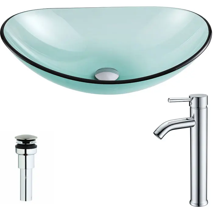 Anzzi Major Series Deco-Glass Vessel Sink in Lustrous Green with Fann Faucet in Chrome, 848308086391, LSAZ076-041